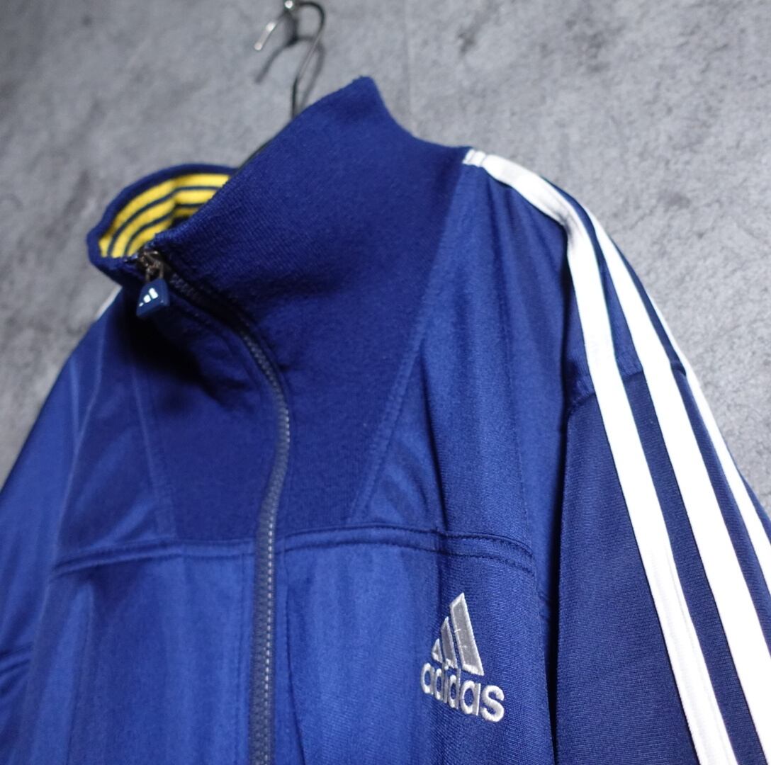 90年代ユーロ製のadidasよりネイビー刺繍トラックジャケットが入荷です。