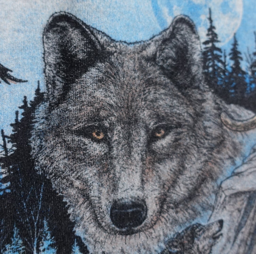 月と森林を背景にウルフ、チーター、タカ、ウサギ、シカをあしらった豪華なデザイン。