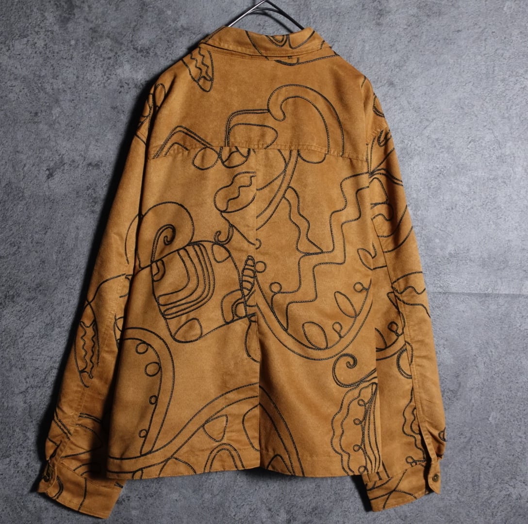 ベージュをベースに幾何学模様の刺繍を全然に施したアーティスティックなデザイン。