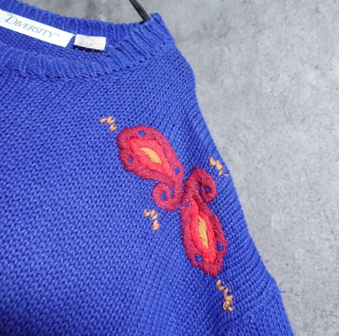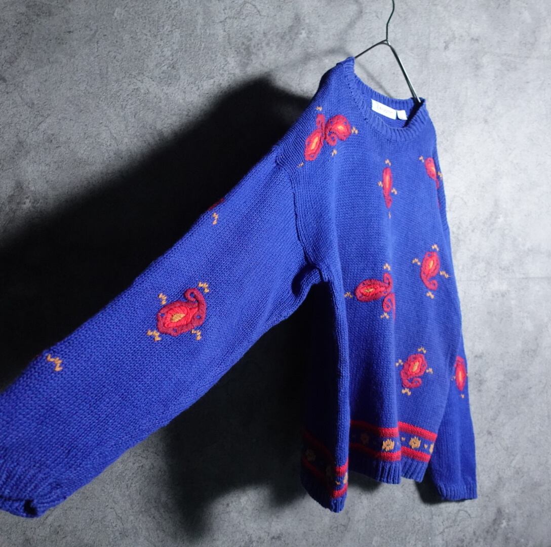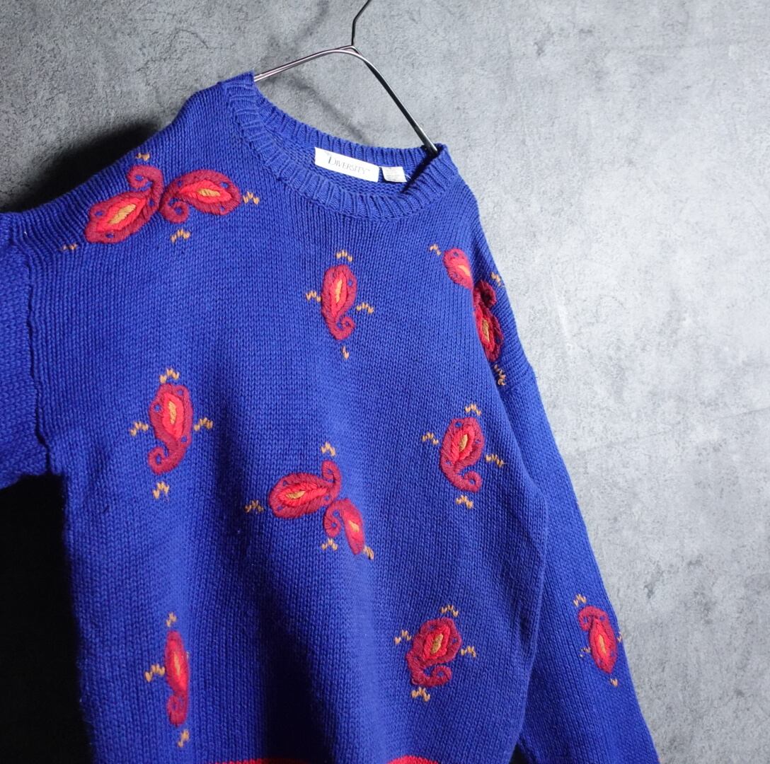 ブルーのペイズリーモチーフ刺繍デザインニットが入荷です。
