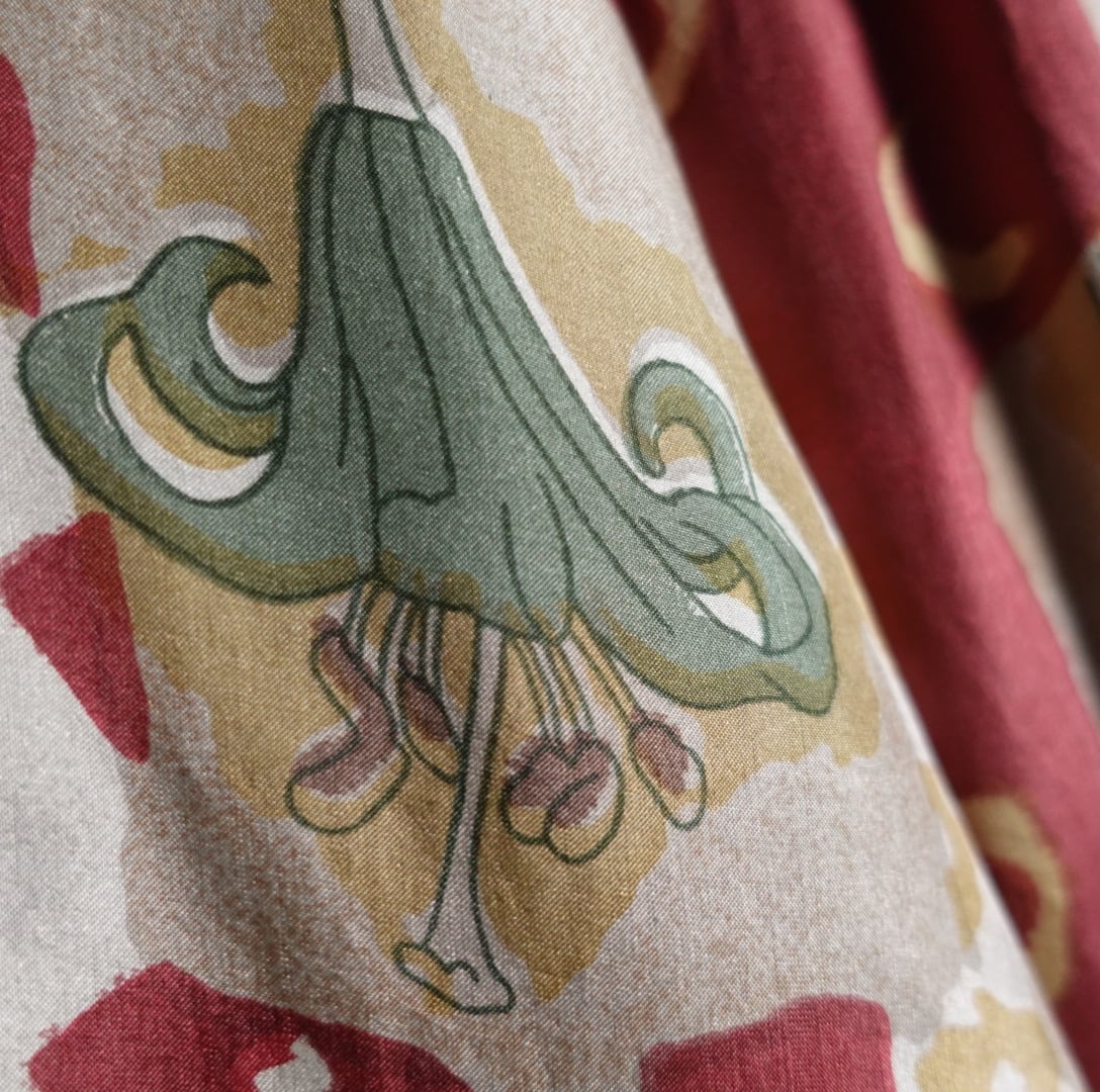素材はシルク100%で上品な光沢感があり軽やかな生地感で今の季節にぴったりの生地感です。