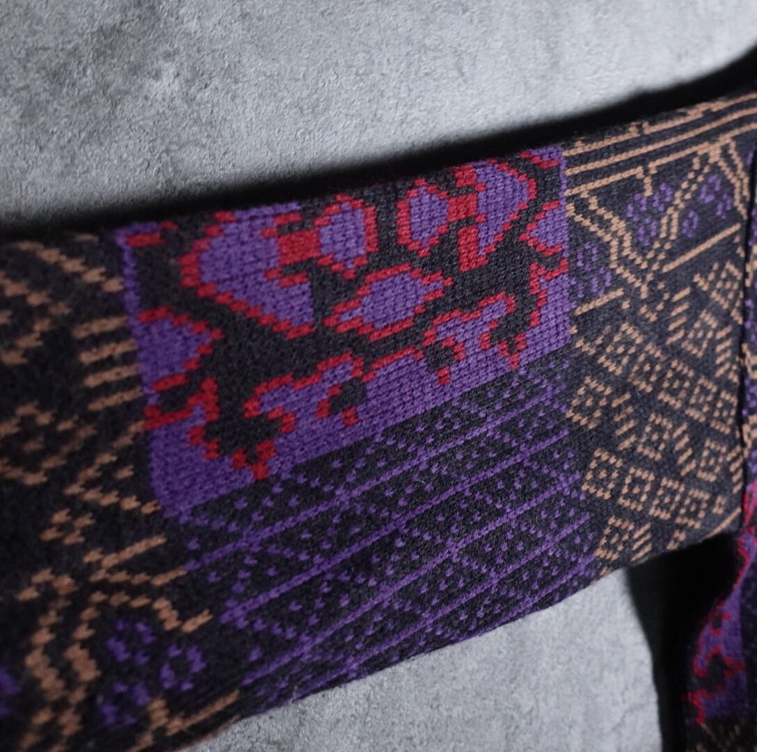 パープルをベースにベージュ、レッド、ブラックのモードなマルチカラーリング。