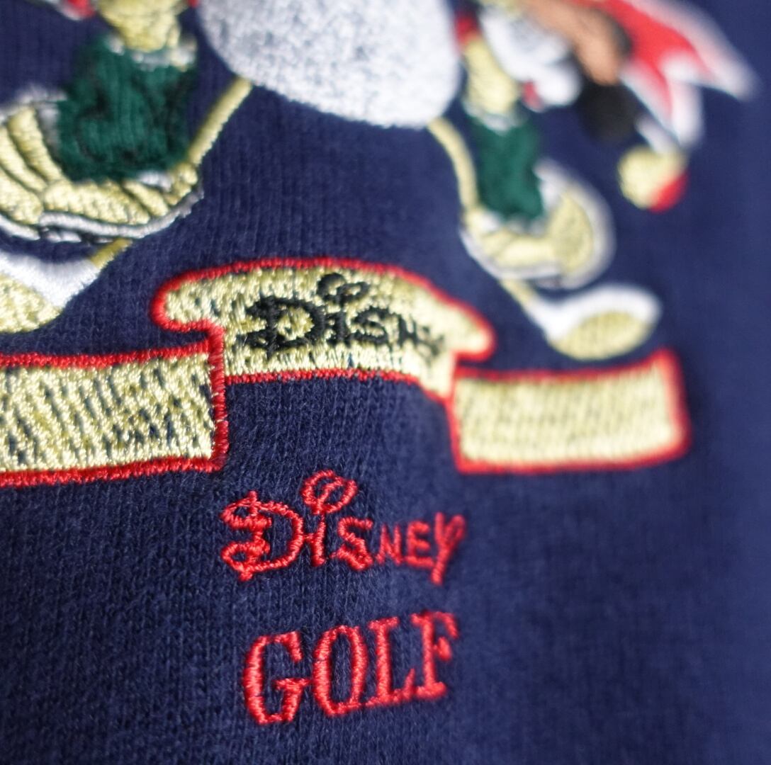 ネイビーをベースにミッキーがゴルフをしている様子を精巧な刺繍で表現した珍しいデザイン。