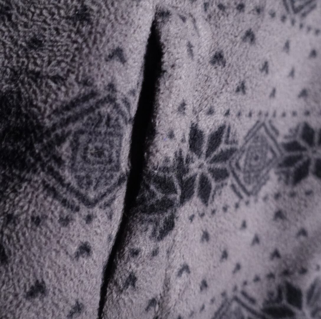 素材はポリエステル100%で表はフリースになっており暖かく保温性があり裏地は毛足のあるタオル生地のようになっており着心地の良い生地感となっています。