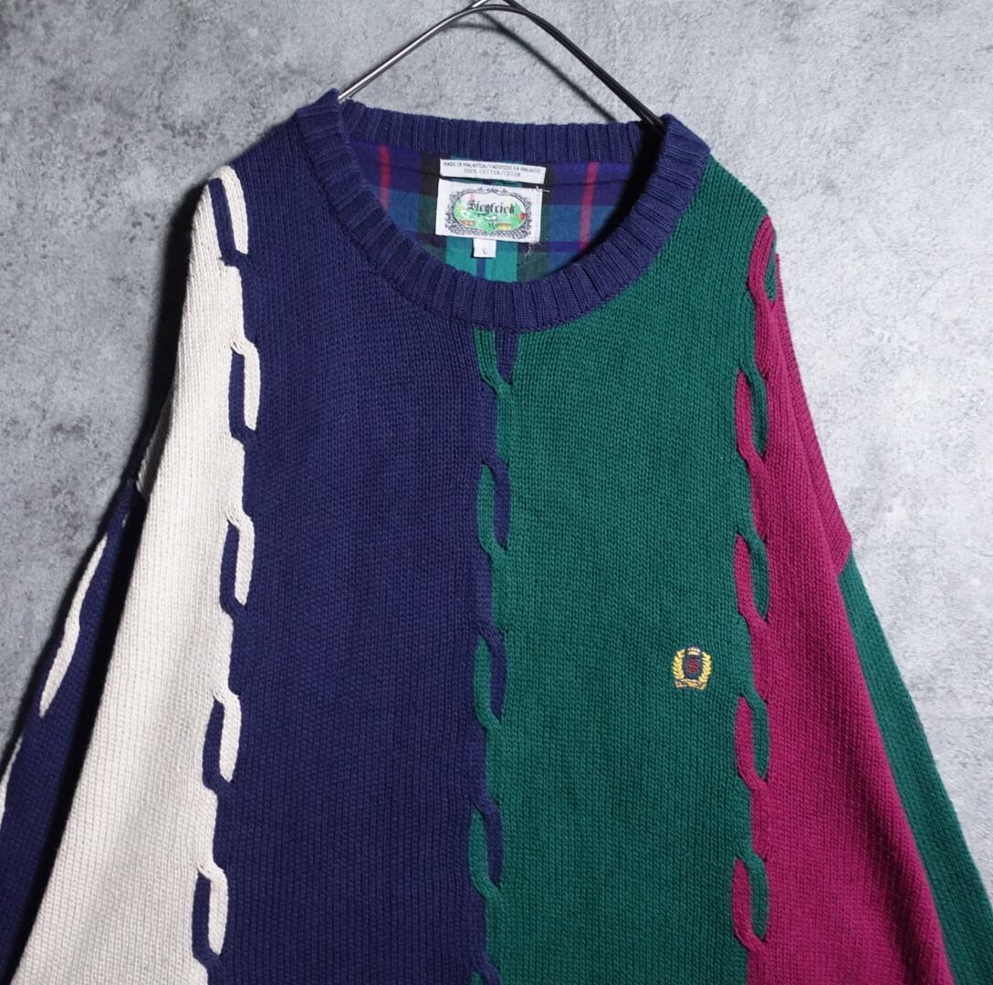 ネイビーをベースにグリーン、アイボリー、ワインレッドのマルチカラーリング。