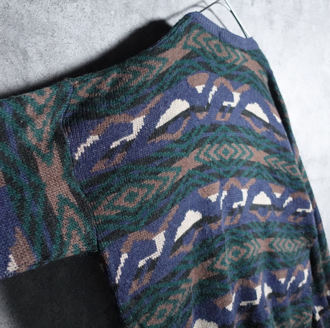 ボーダー柄の幾何学デザインカーディガンが入荷です。