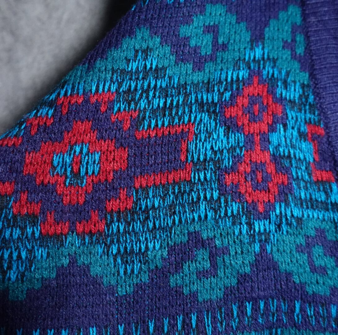 レッド、ネイビー、グリーン、ブルーのマルチカラーリング。