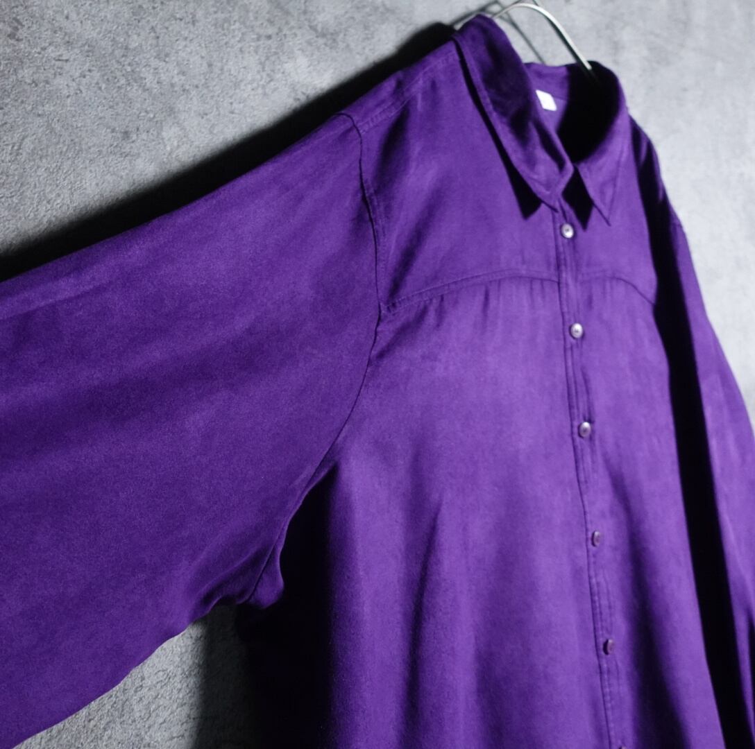 パープルのオーバーサイズピーチスキンシャツが入荷です。