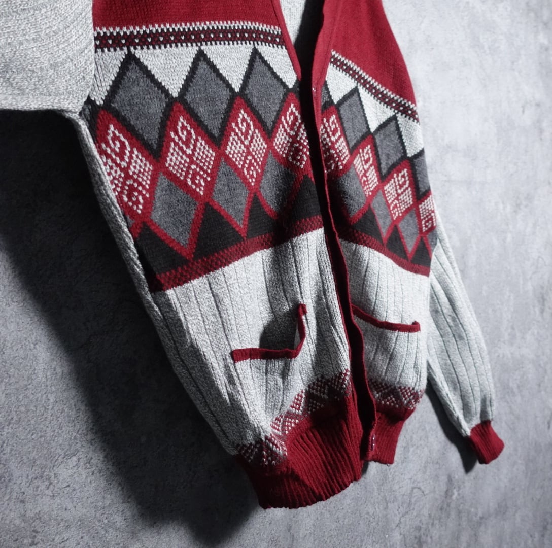 レッド&グレーのアーガイル柄デザインカーディガンが入荷です。