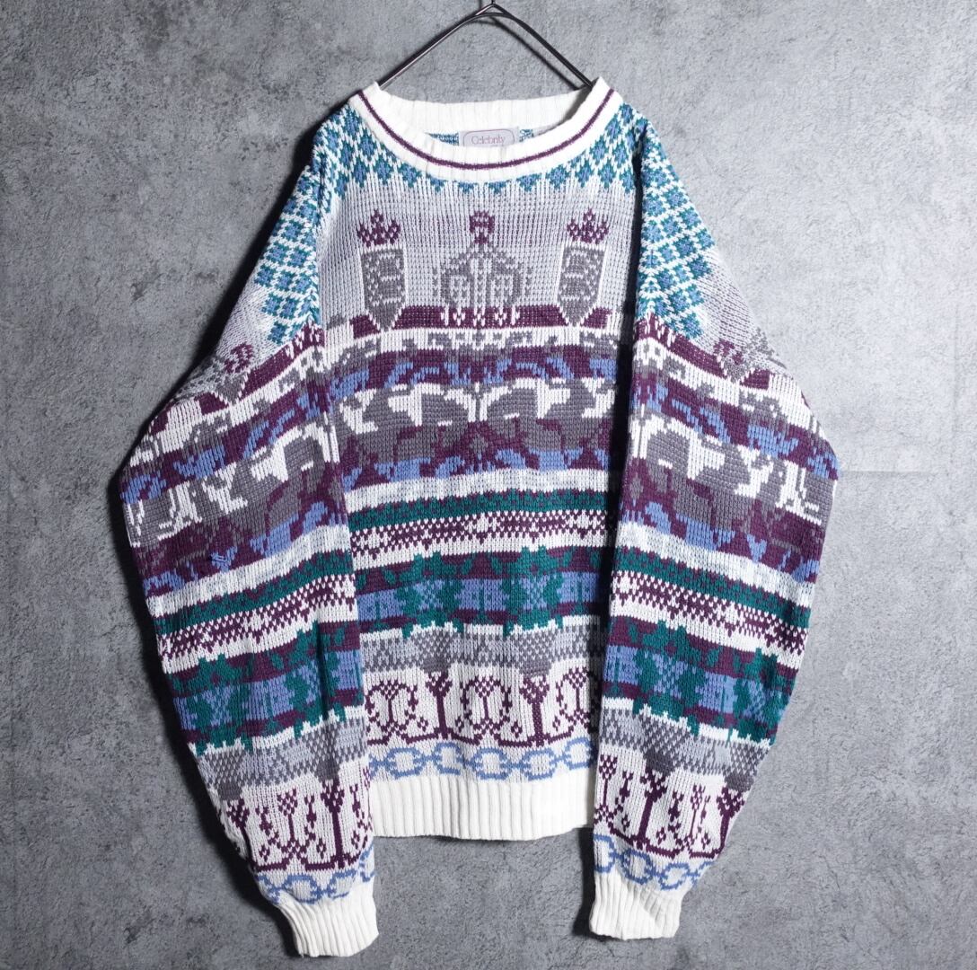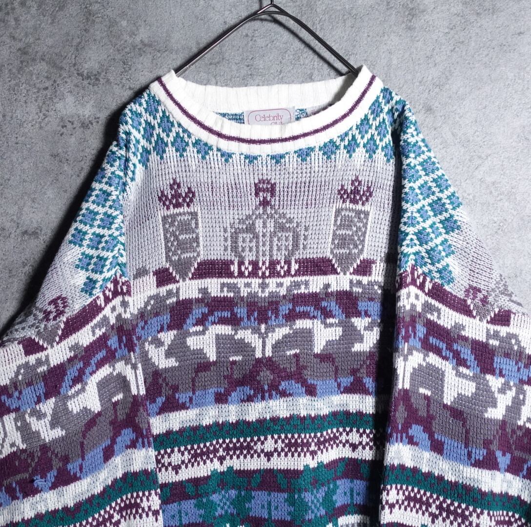 Multicolor border pattern design knit