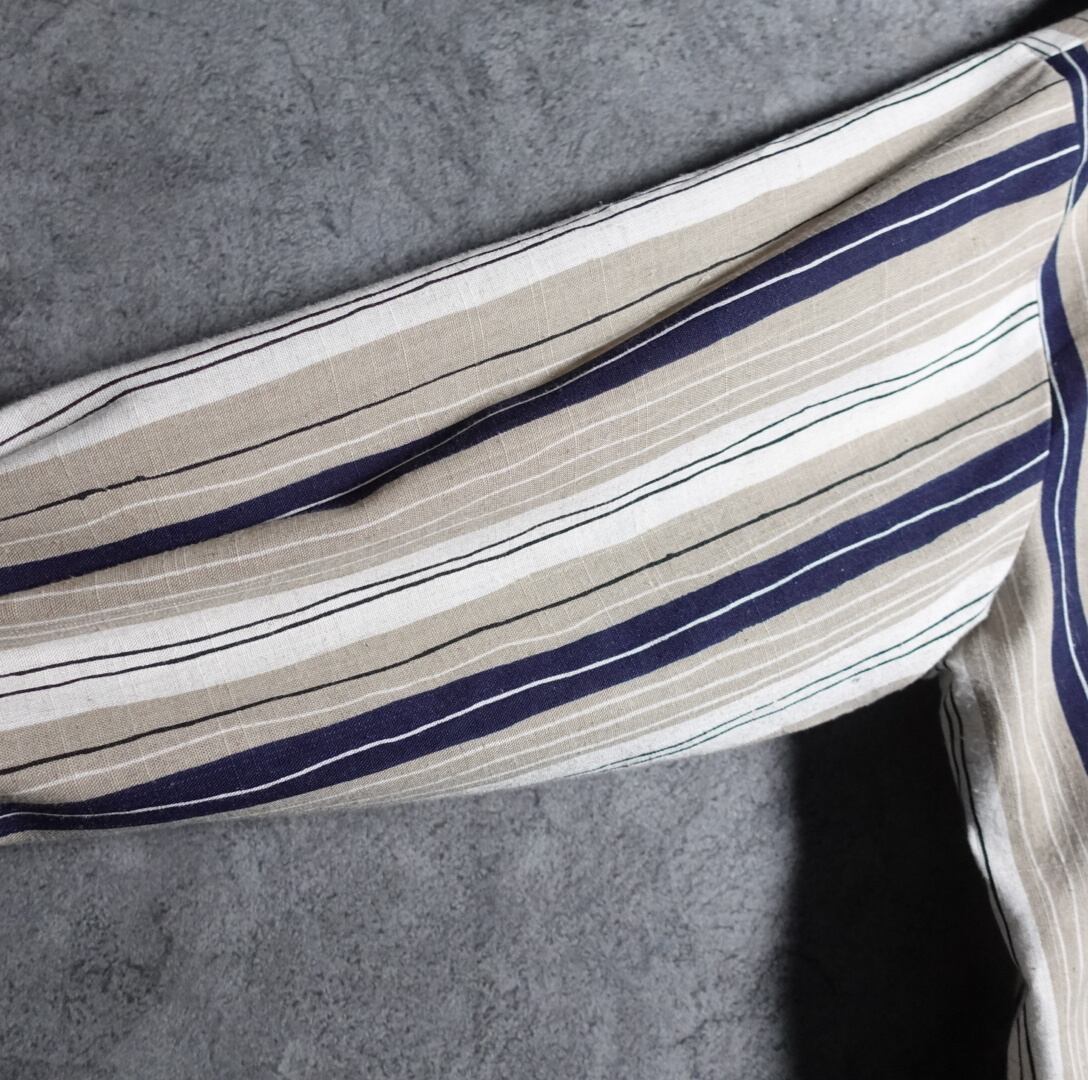ライン一本一本が直線ではなく、歪んだ曲線のようになっており、普段のストライプ柄よりも小洒落た雰囲気で着ていただけます。