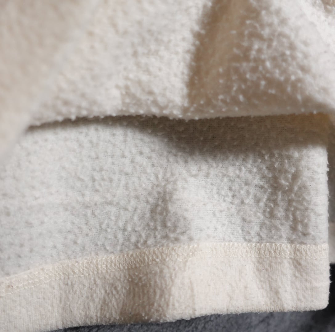 アイボリーのフリース生地と相まってふんわりとした優しい雰囲気になっていて◎