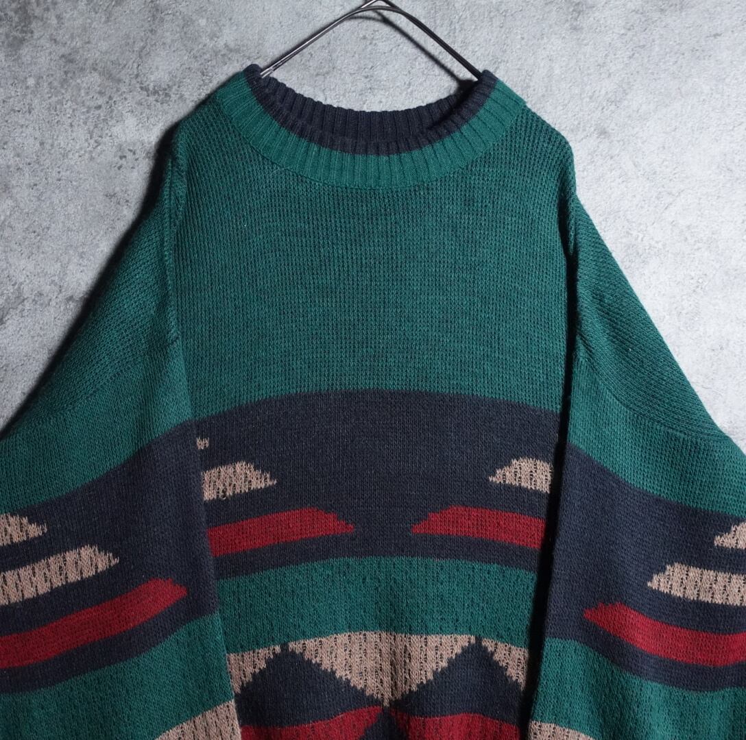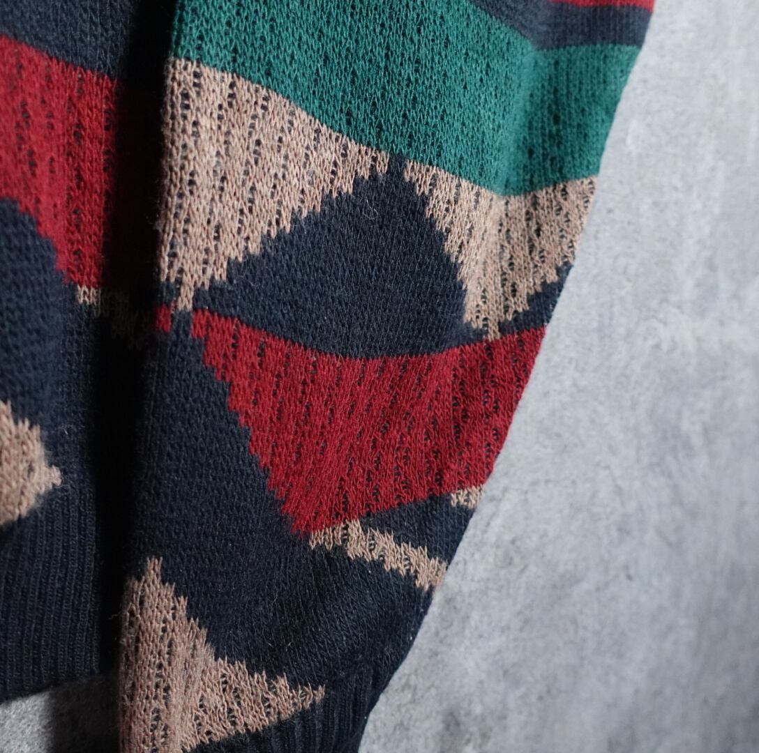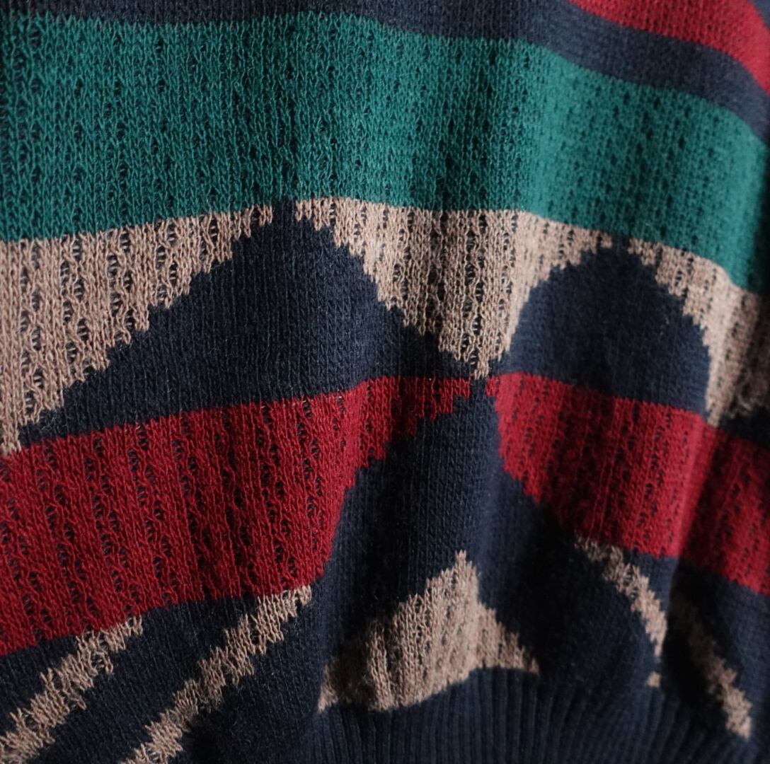 グリーン、ネイビー、レッド、ブラウンのマルチカラーリング。