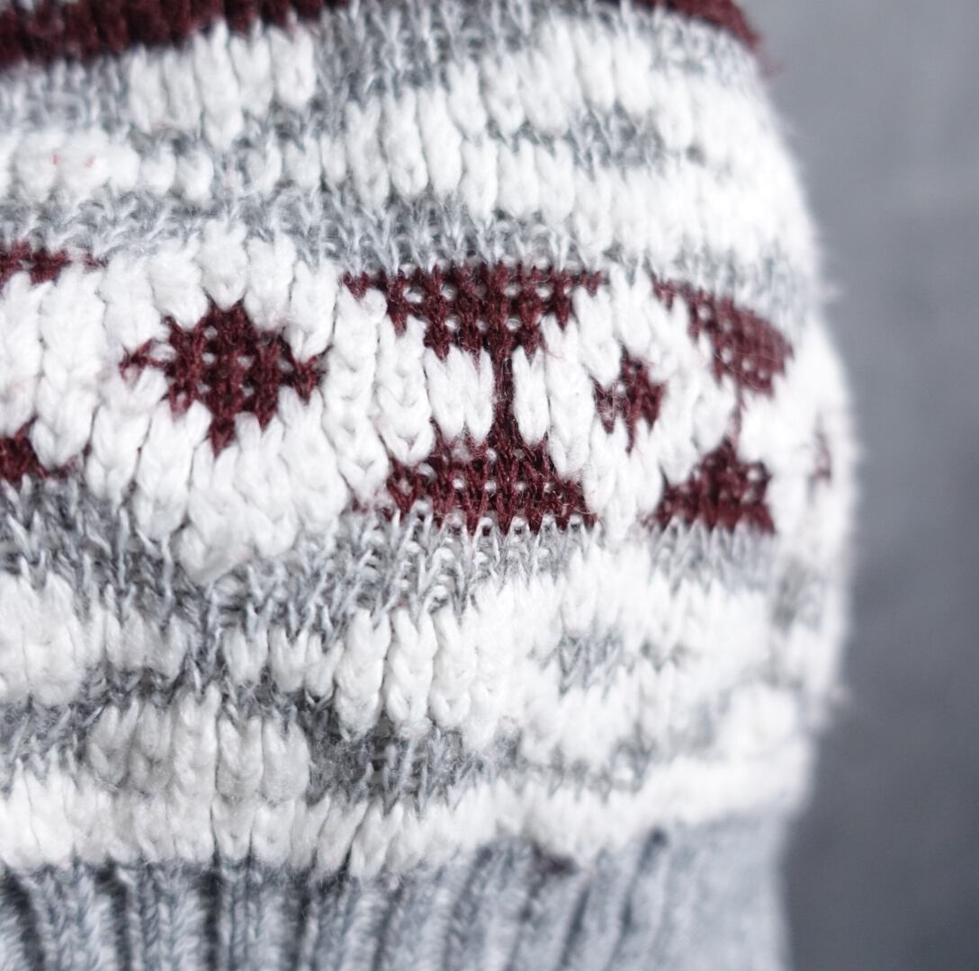 グレー、ホワイト、ボルドーの秋冬らしさのあるマルチカラーリング。