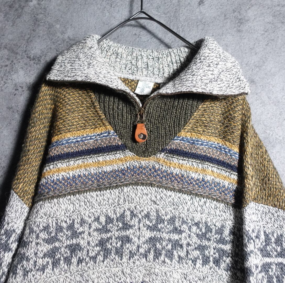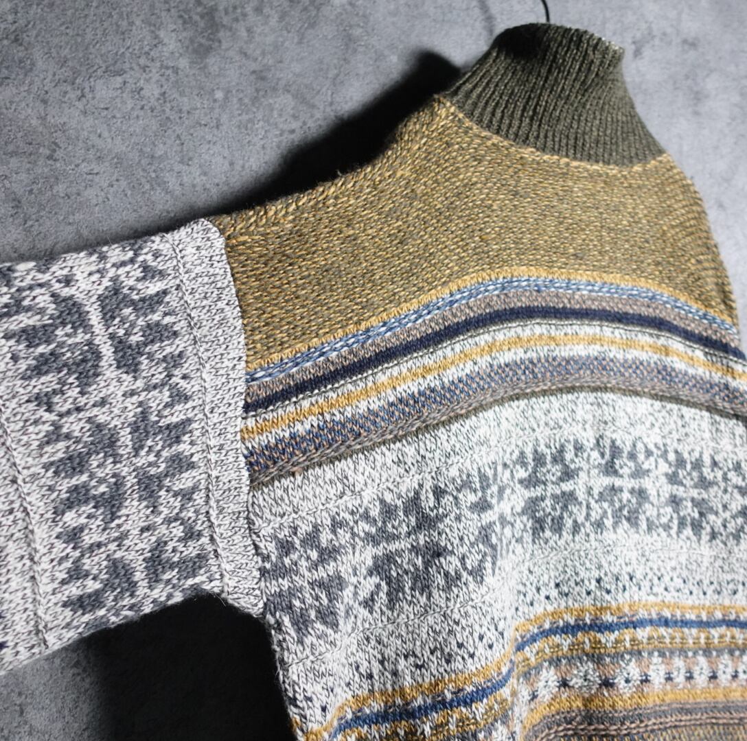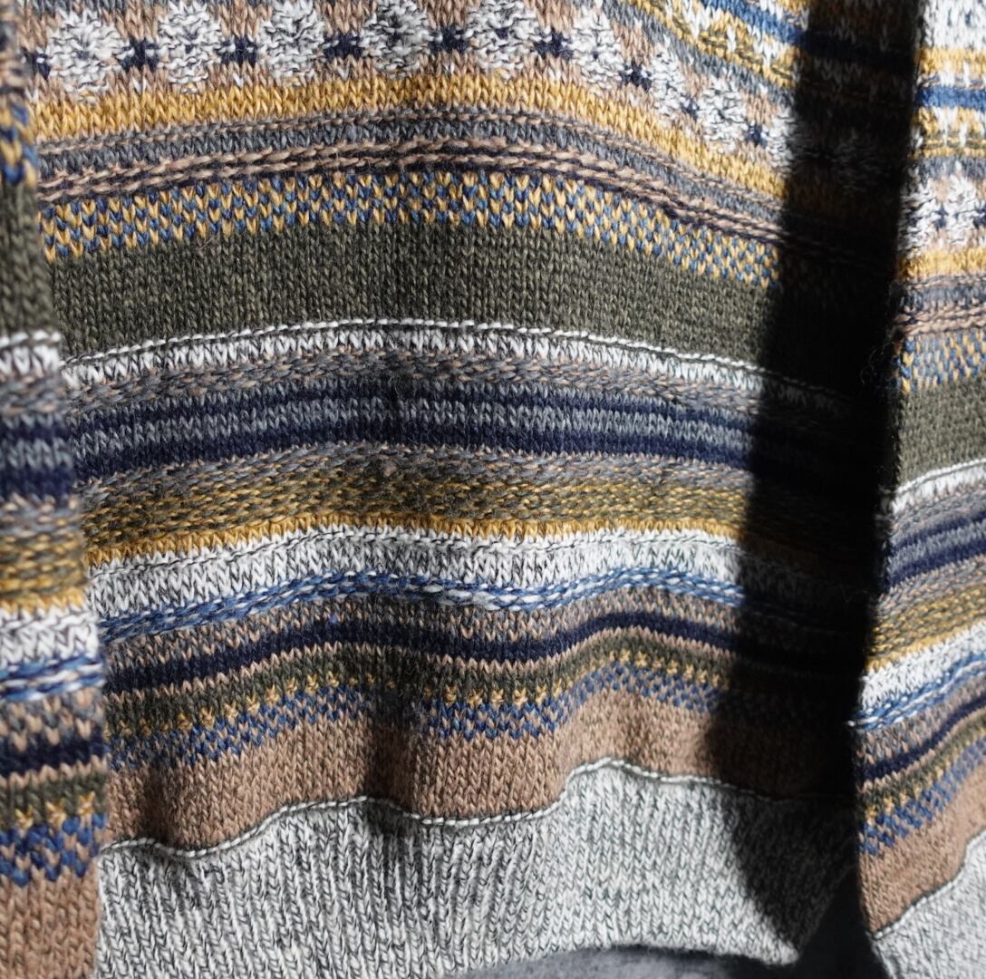 アイボリー、カーキ、イエロー、ブルー、グレーなどの古着ならではのマルチカラーリング。