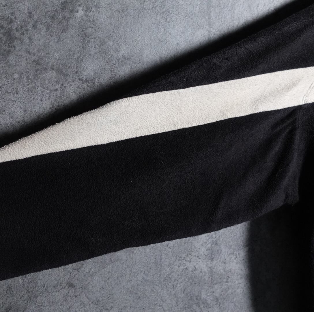 ブラックの単色ではなく、袖先から背中にかけてアイボリーの一本のラインが入っているのがデザインのアクセントになっています。
