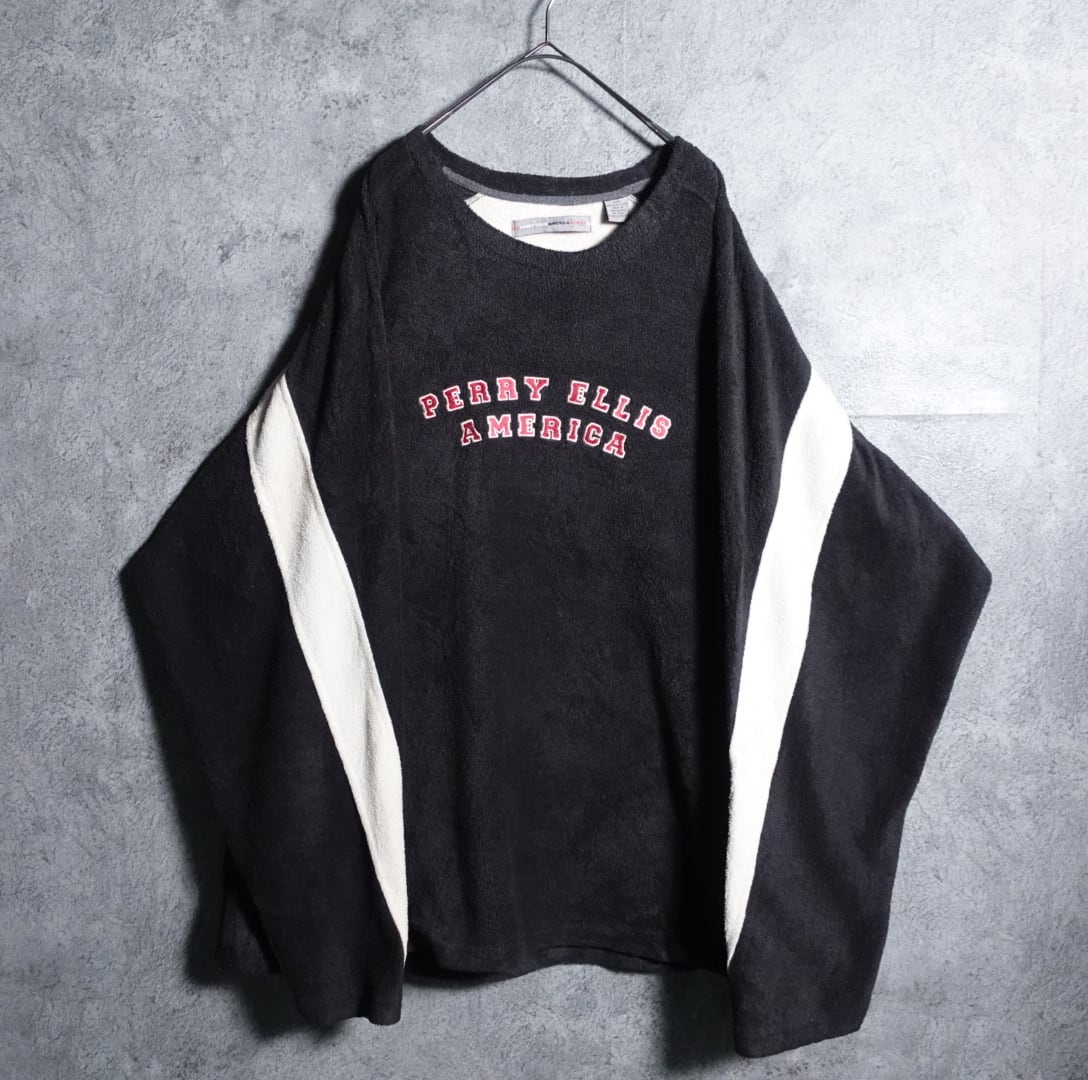 PERRY ELLISよりブラック刺繍フリーススウェットが入荷です。