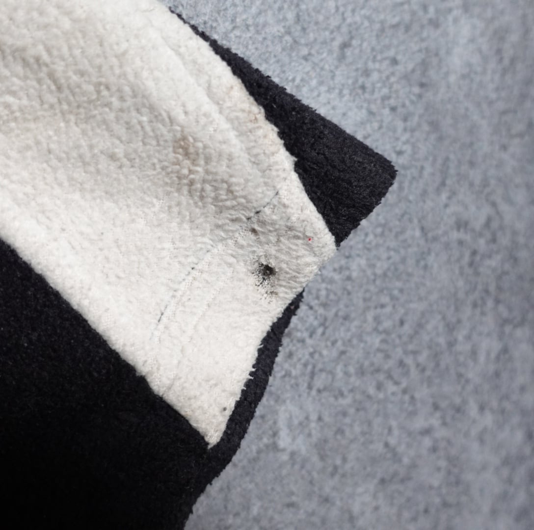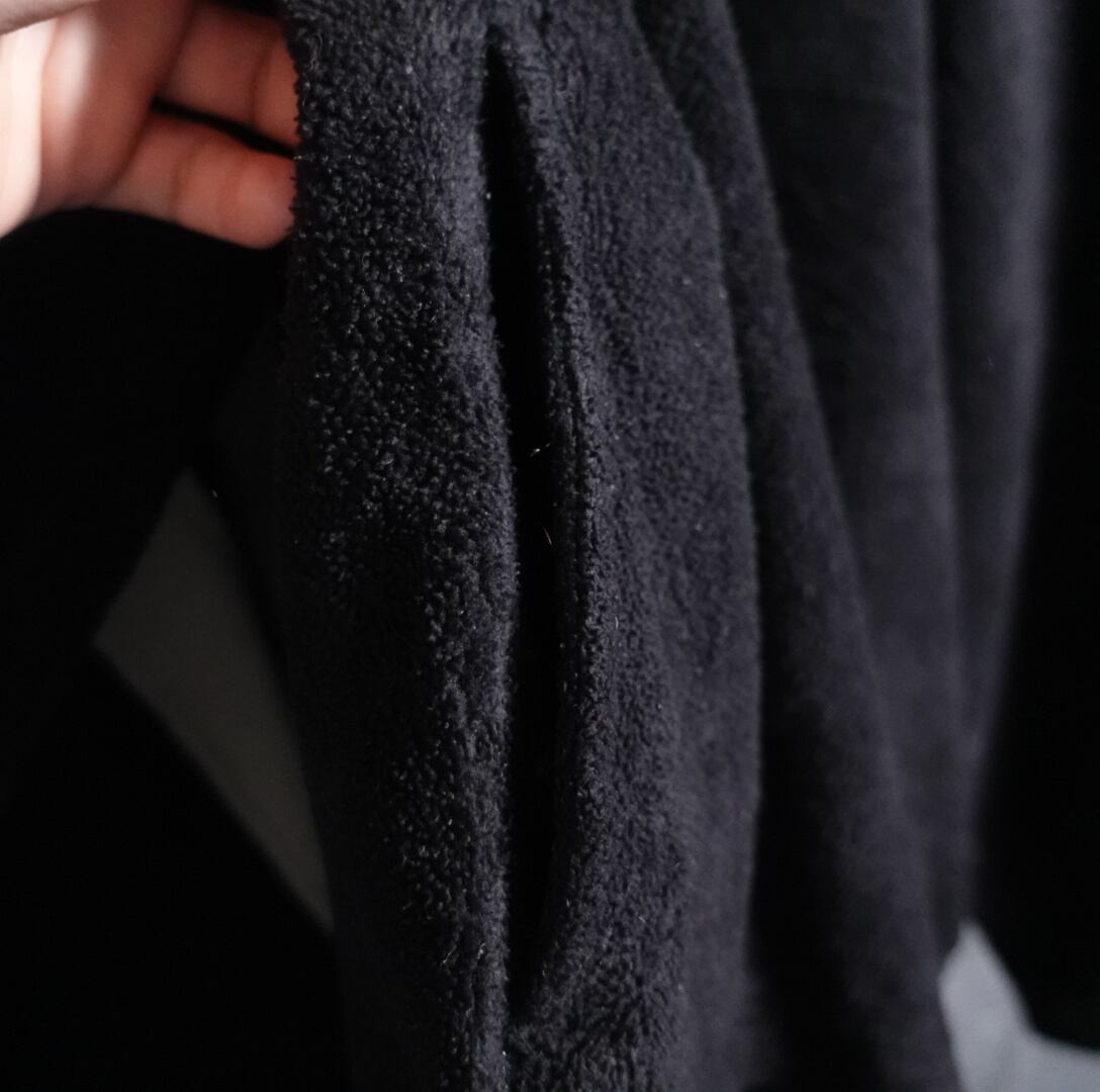素材はポリエステル100% のフリース生地で保温性に優れておりふんわりとした今の季節にぴったりの生地感となっています。