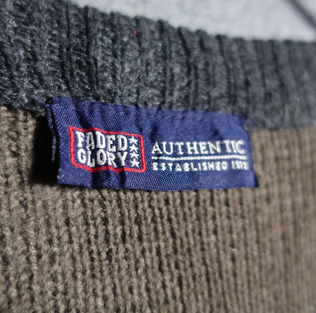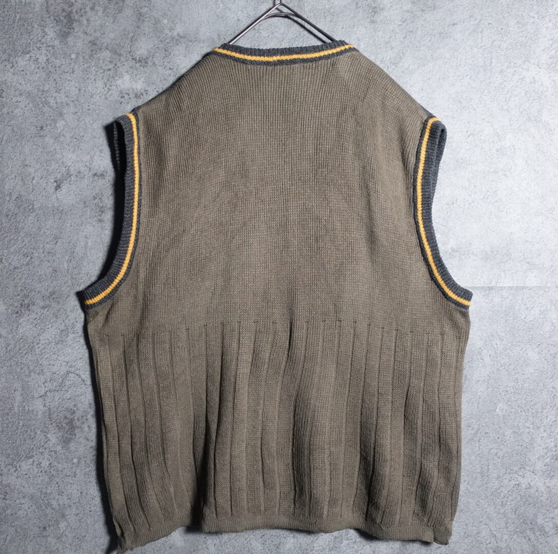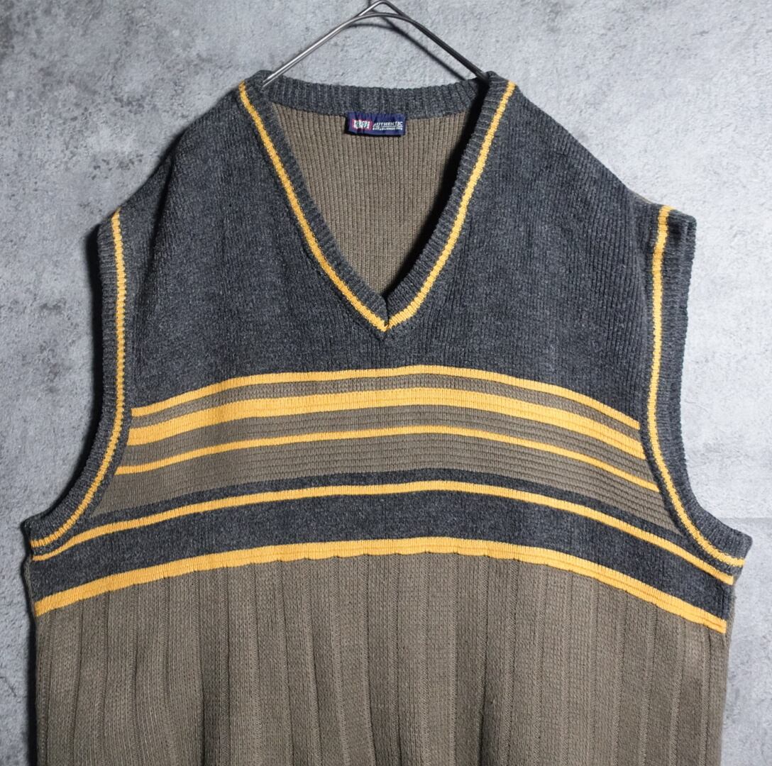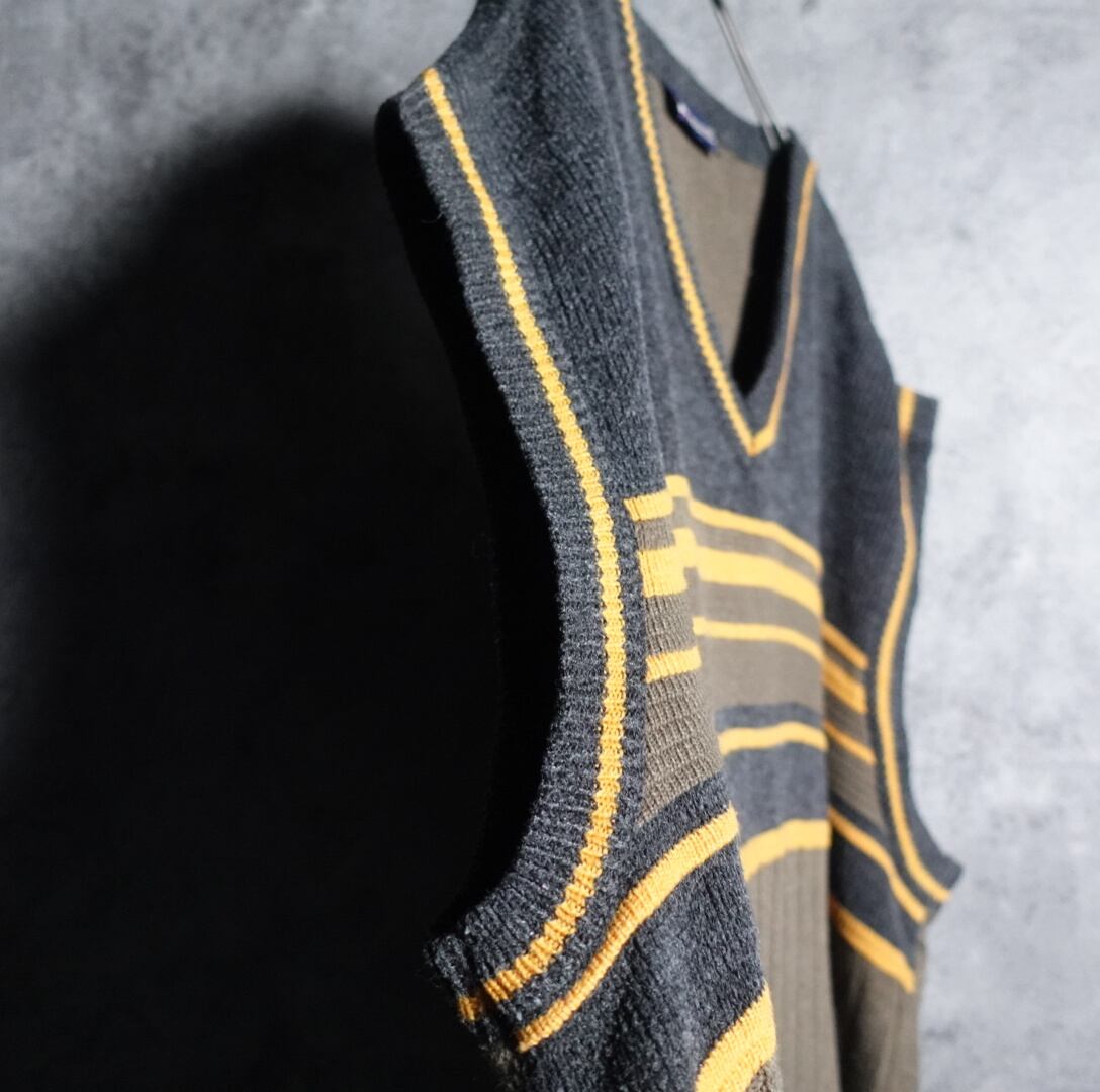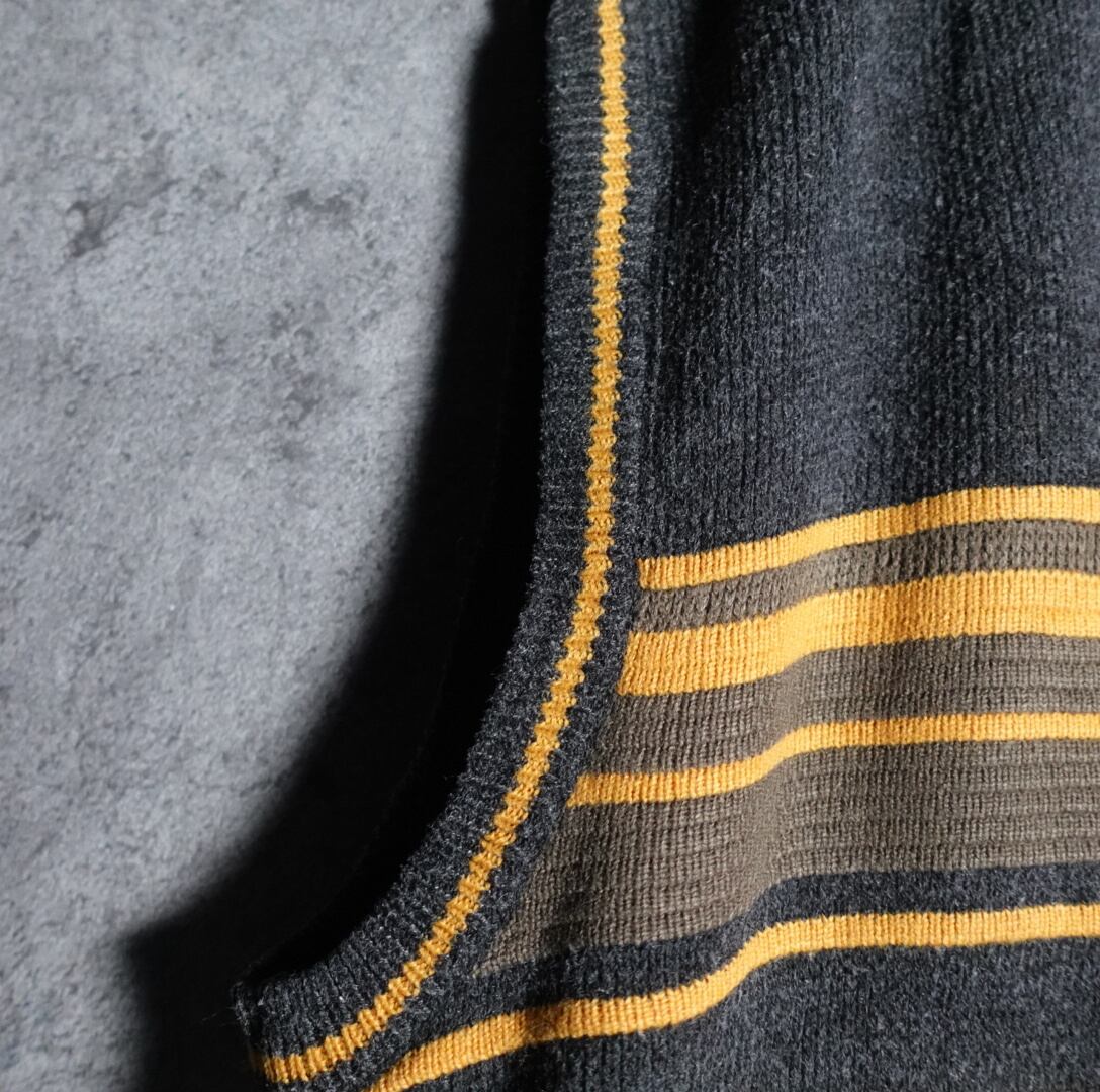 上半分がグレーをベースにカーキとイエローのボーダーがあしらわれており、下半分はカーキのリブ編みになった珍しいデザイン。