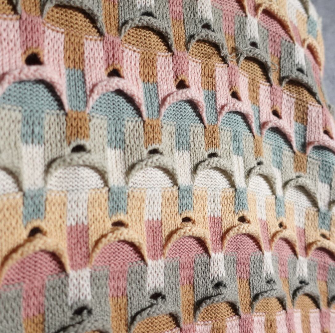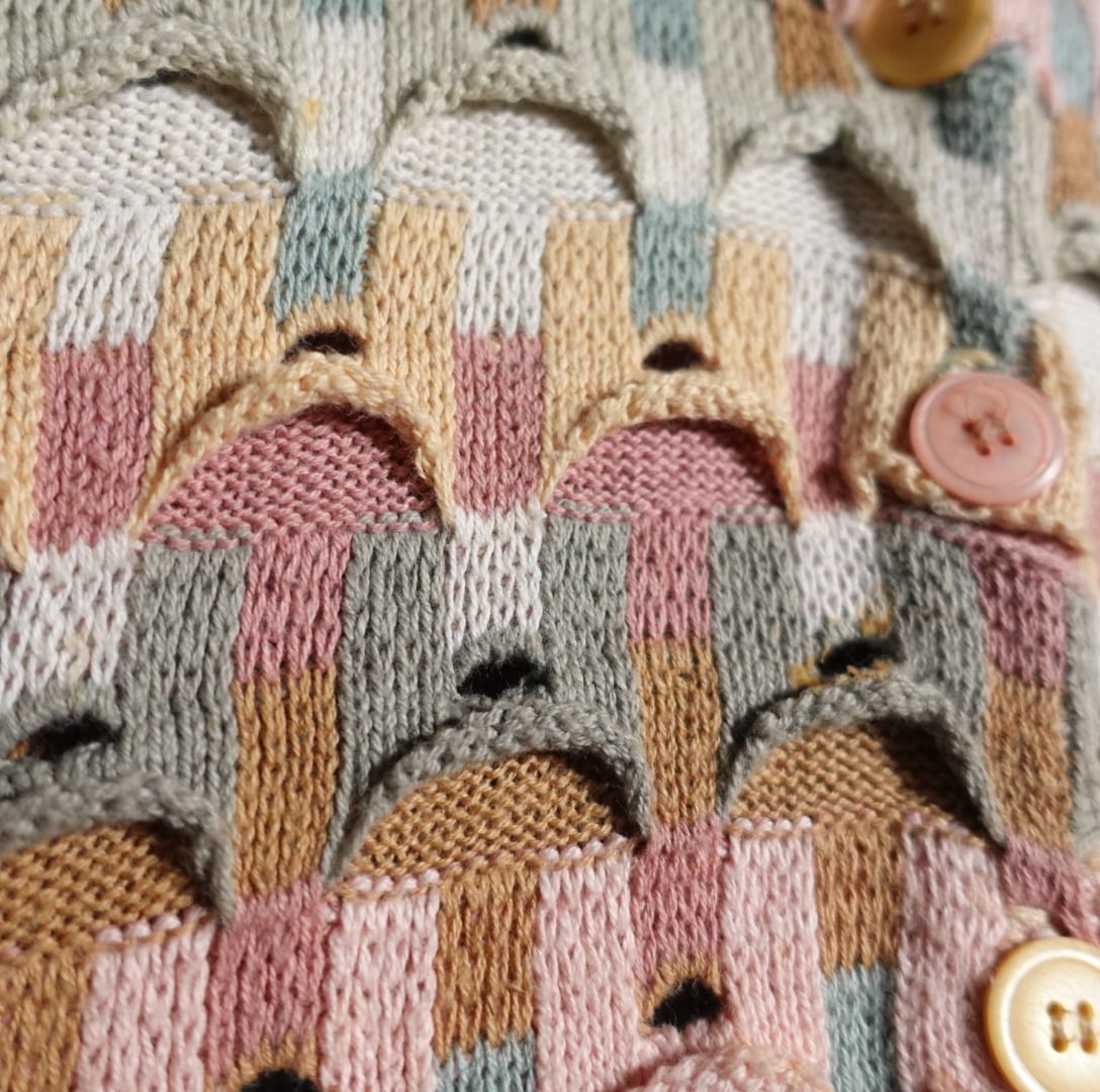 マルチカラーの3Dデザインカーディガンが入荷です。
