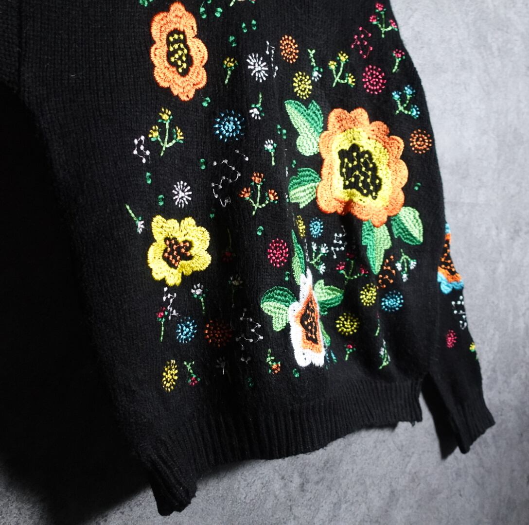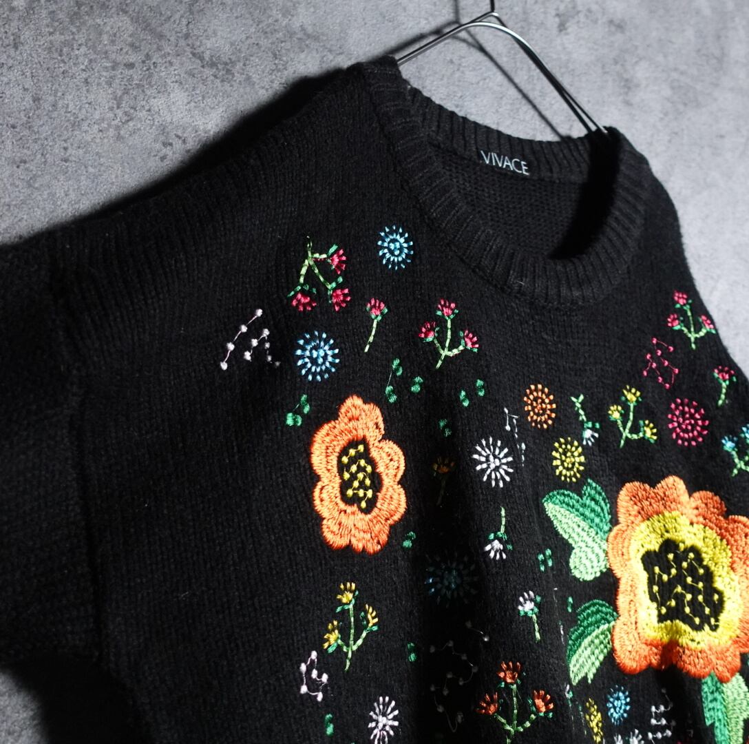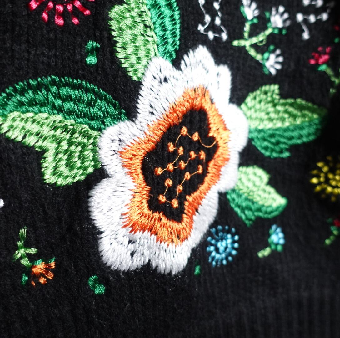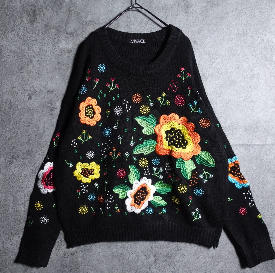 ブラックの花柄ボタニカル刺繍デザインニットが入荷です。