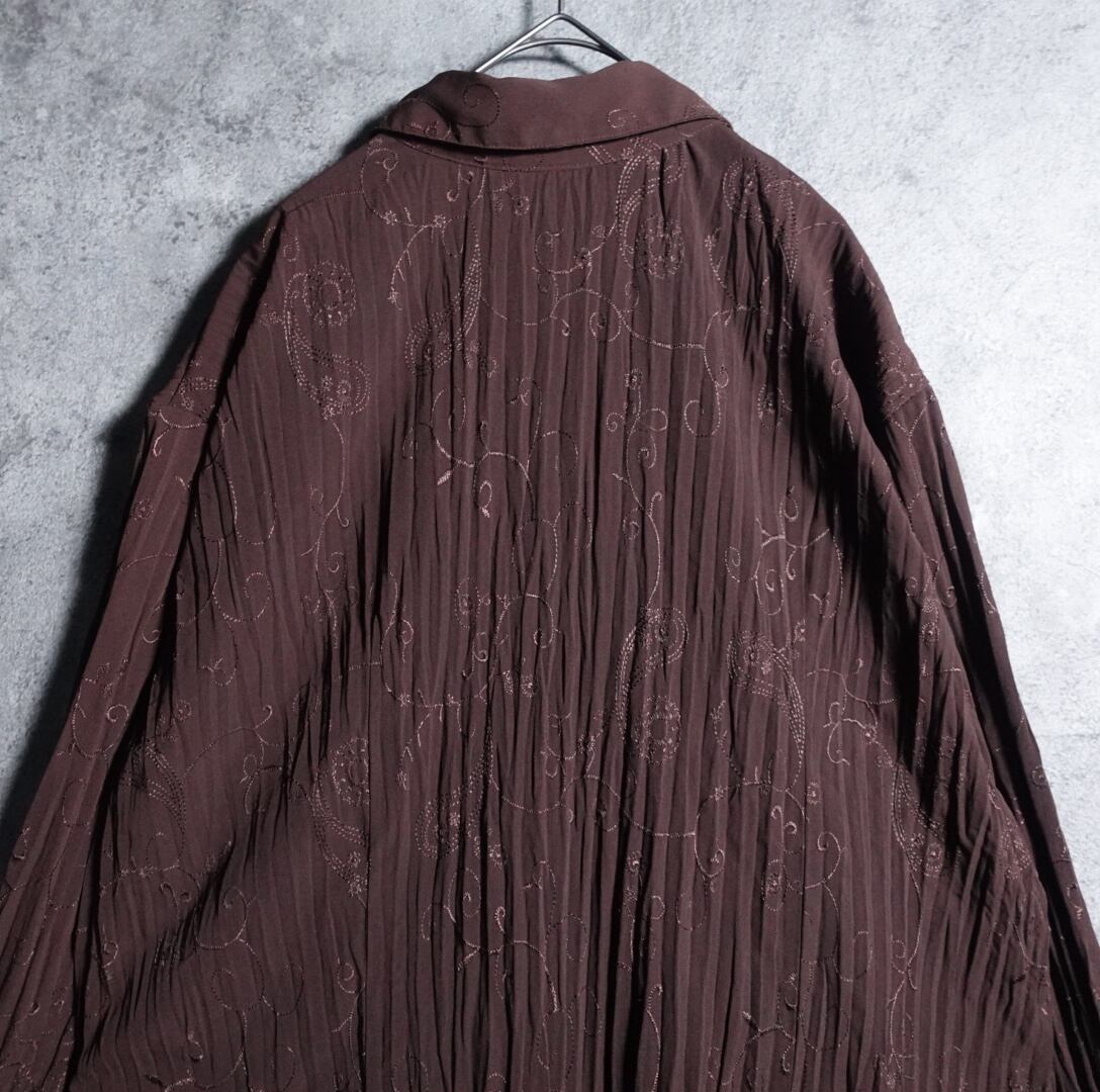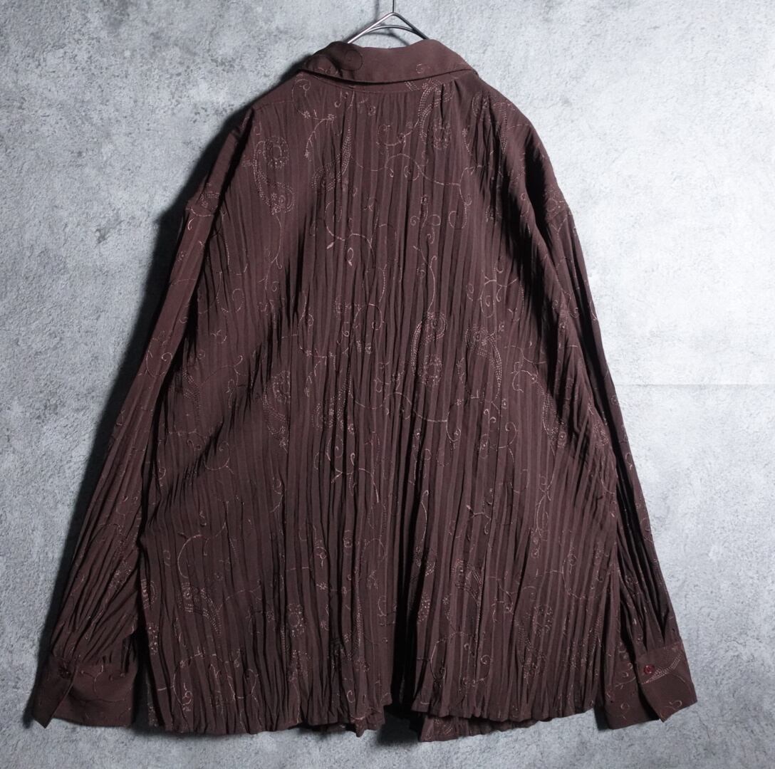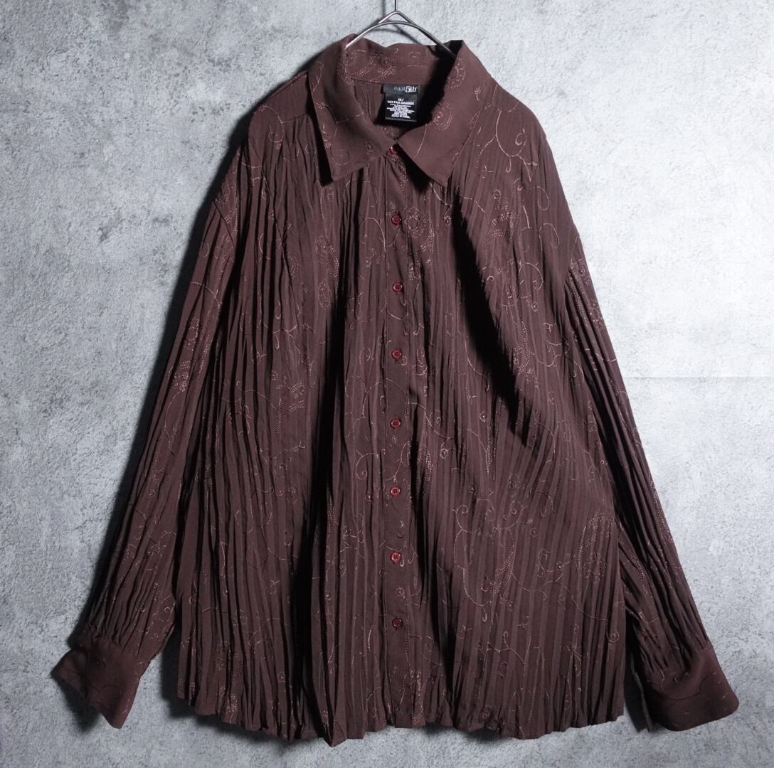 ブラウンの刺繍デザインプリーツシャツが入荷です。