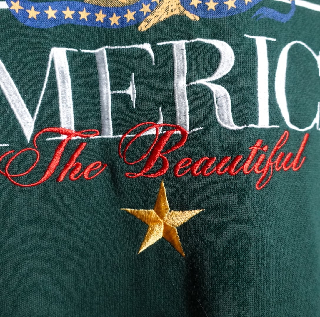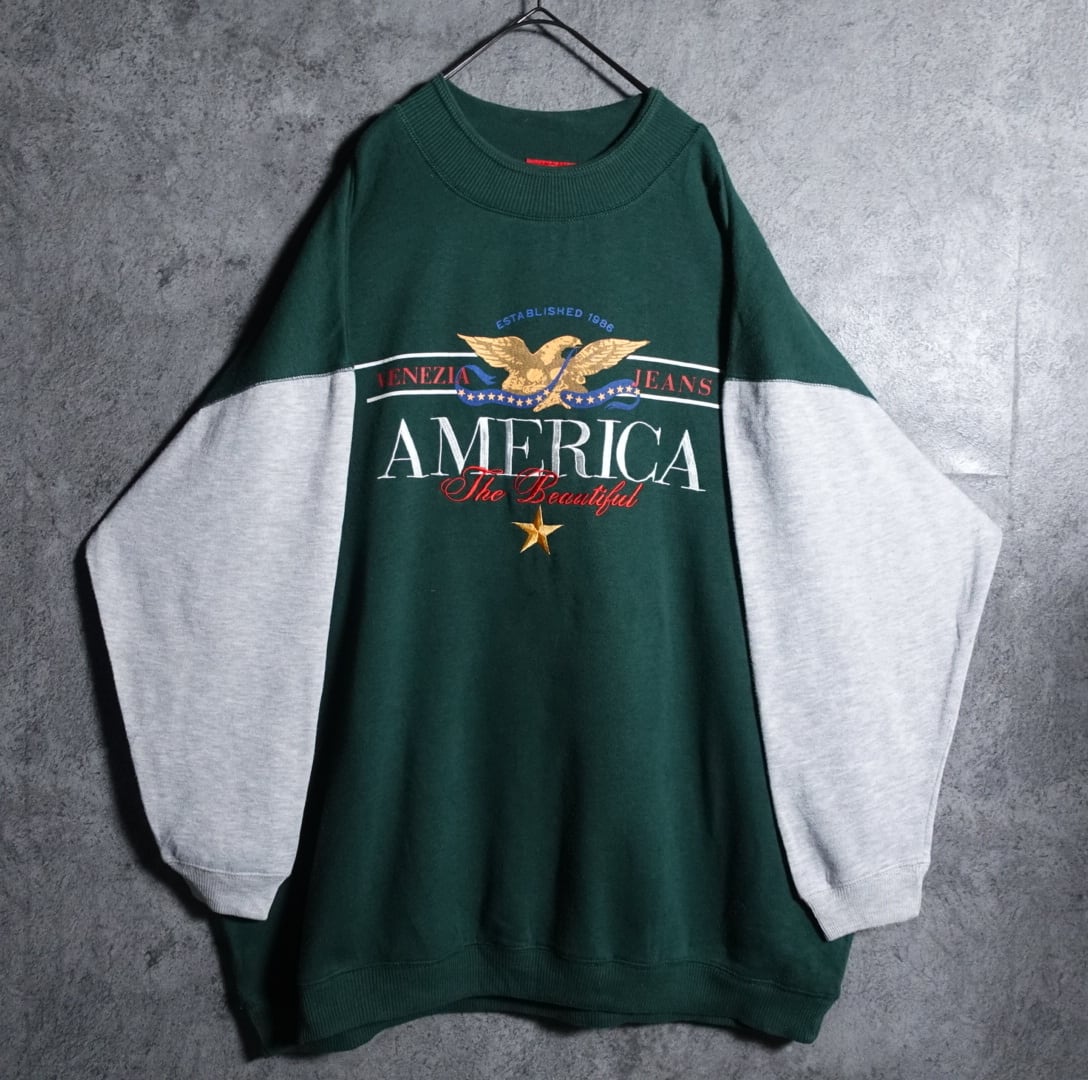 90年代のグリーン×グレーの刺繍デザインスウェットが入荷です。