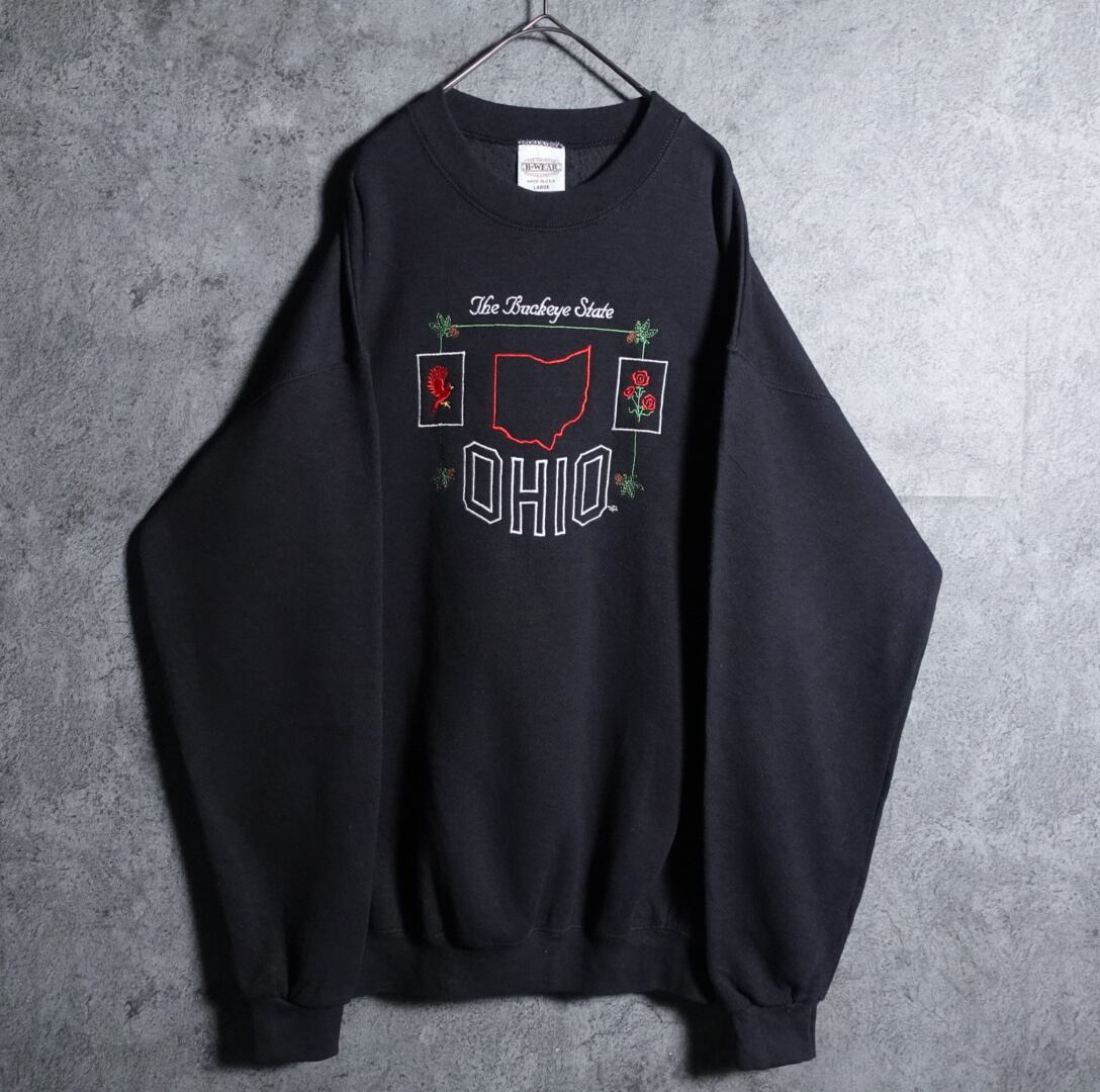 ブラックをベースに薔薇、鳥、OHIOとオハイオ州のモチーフを施した凝ったデザイン。