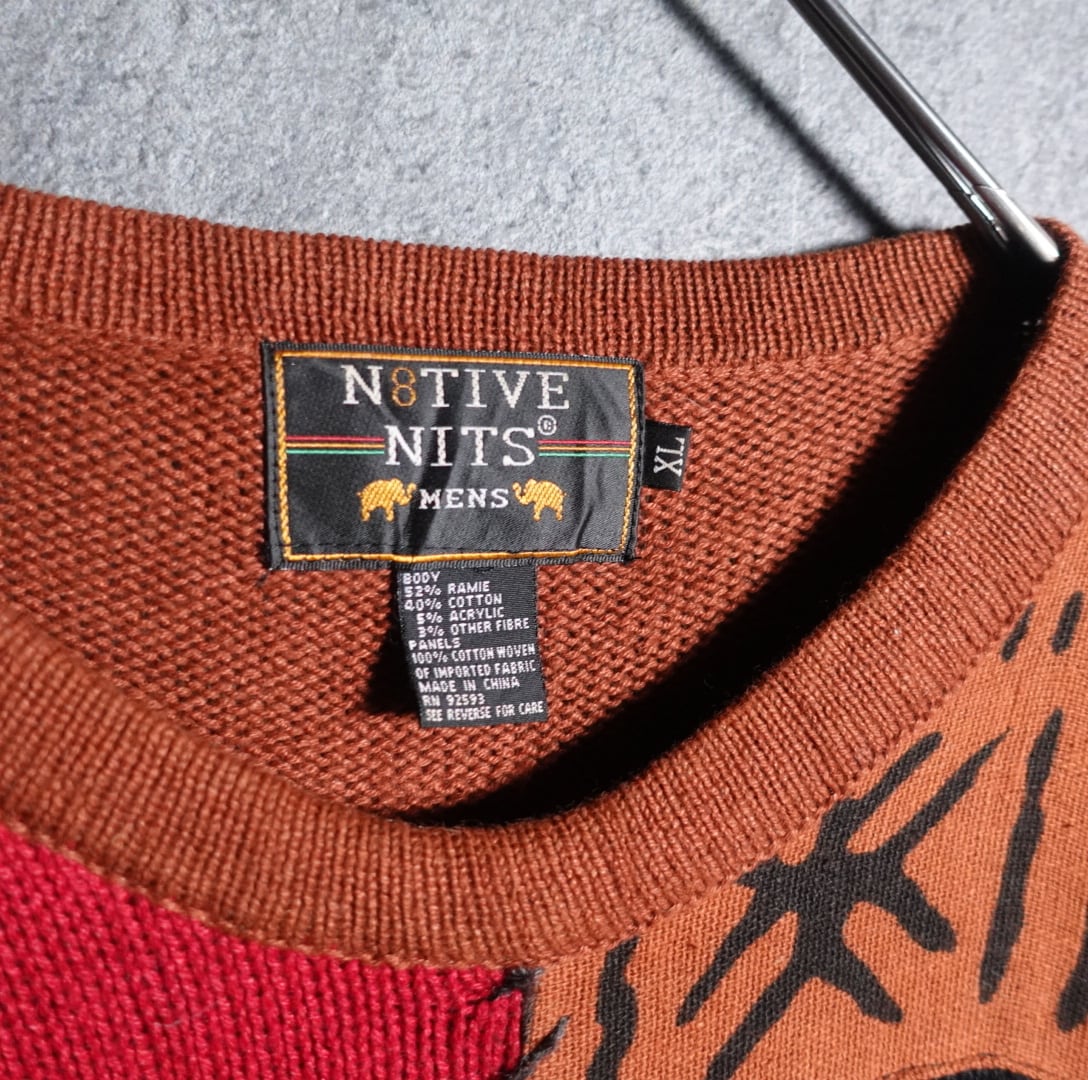 ブラウンのパッチワークネイティブ柄デザインニットが入荷です。