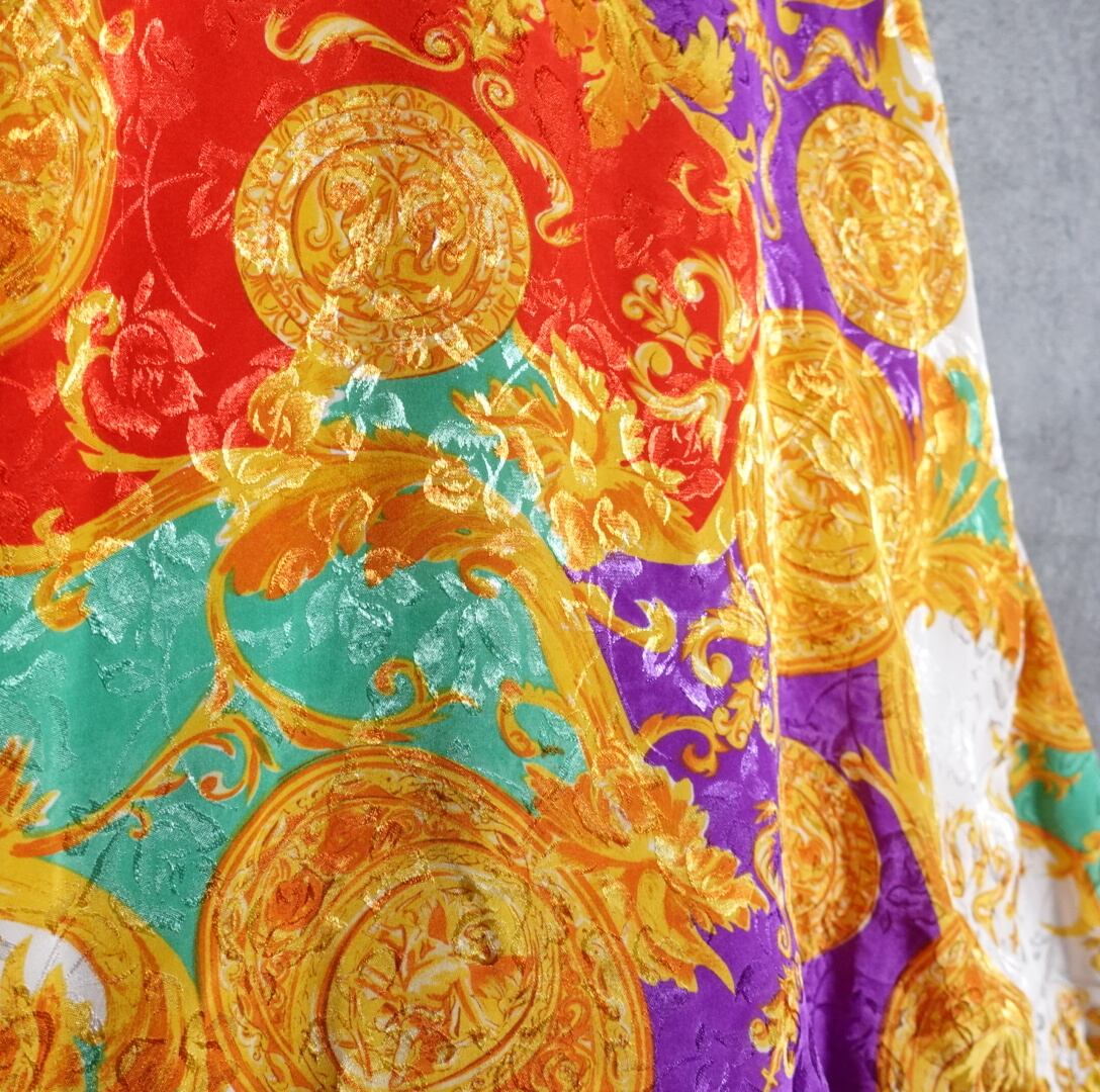 様々なゴールドのモチーフを全面にスカーフ調のラグジュアリーなデザイン。