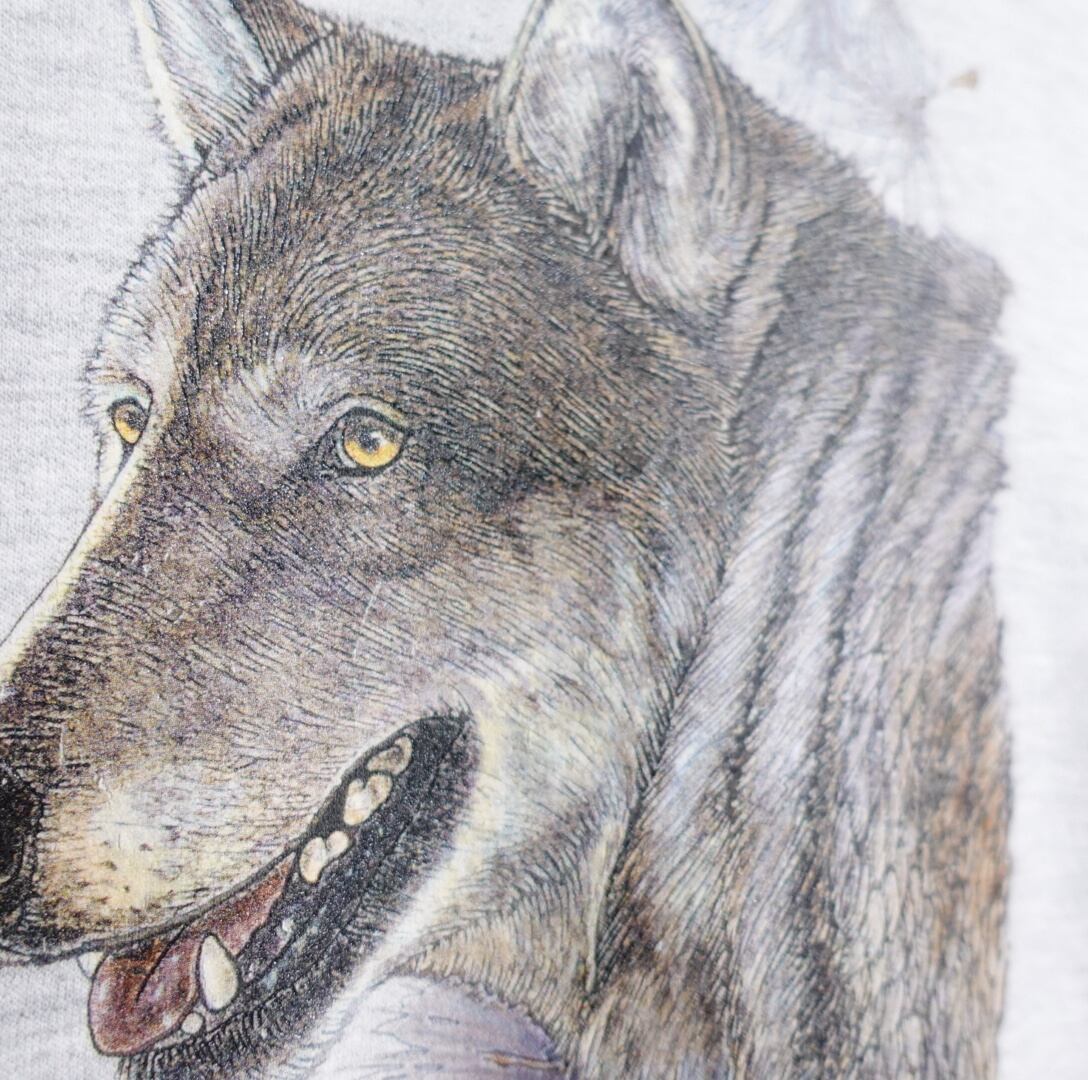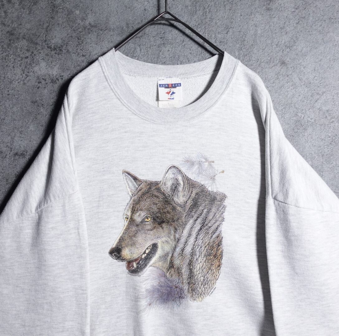 90年代アメリカ製のJERZEESよりライトグレーウルフアニマルプリントスウェットが入荷です。