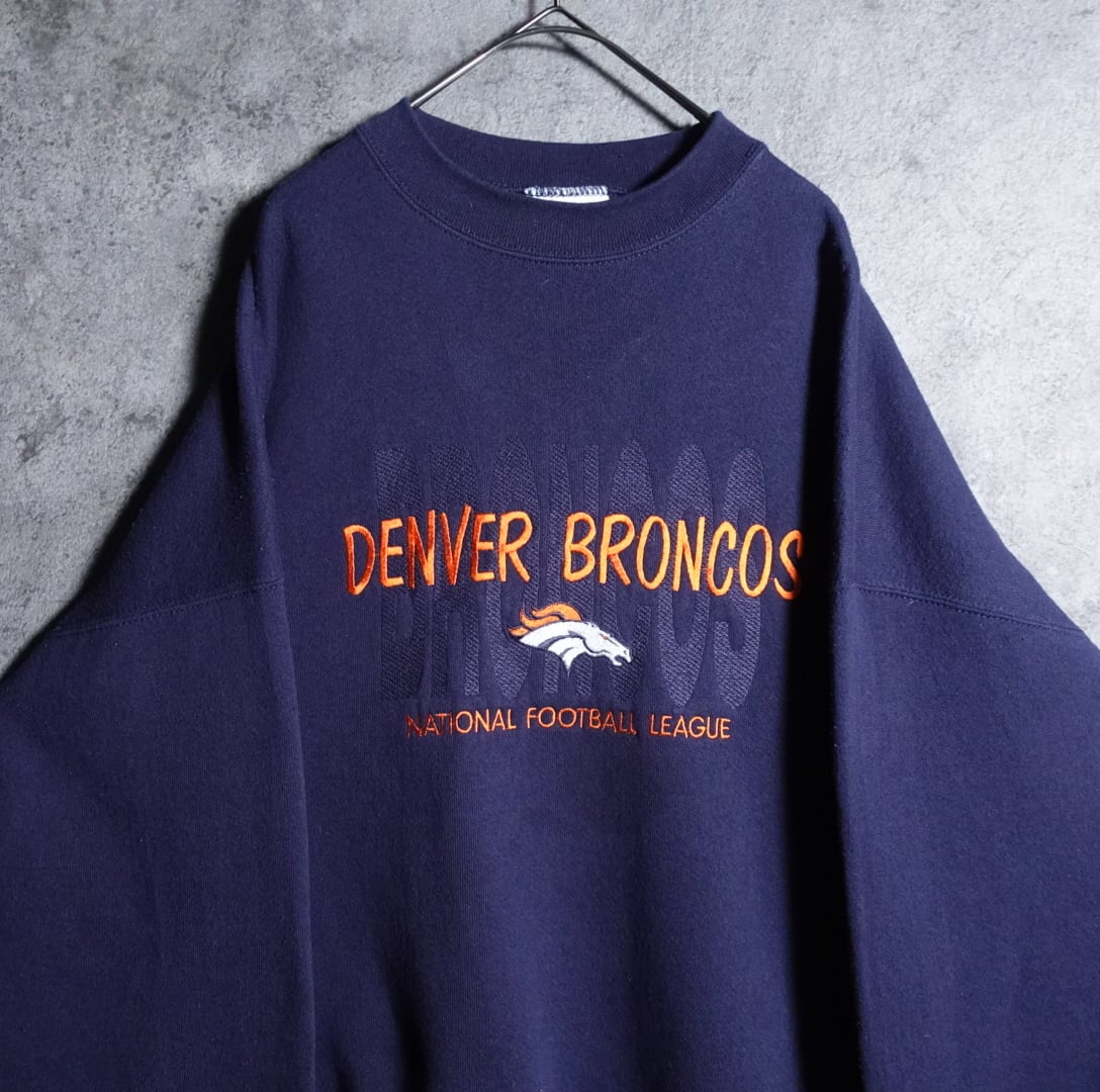 ネイビーをベースにフットボールチームのデンバーブロンコスの刺繍とチームロゴであるホースの刺繍を前面にあしらったデザイン。