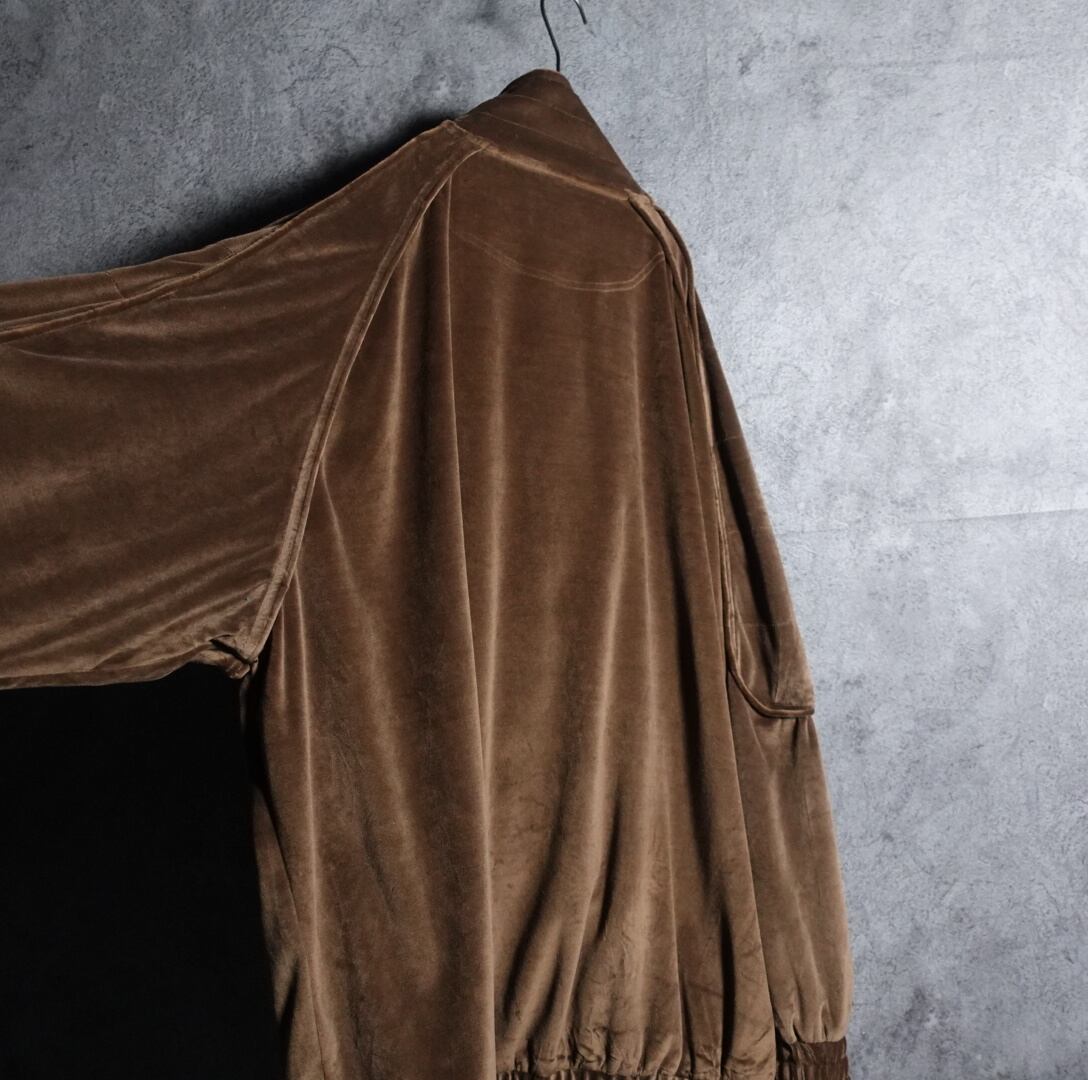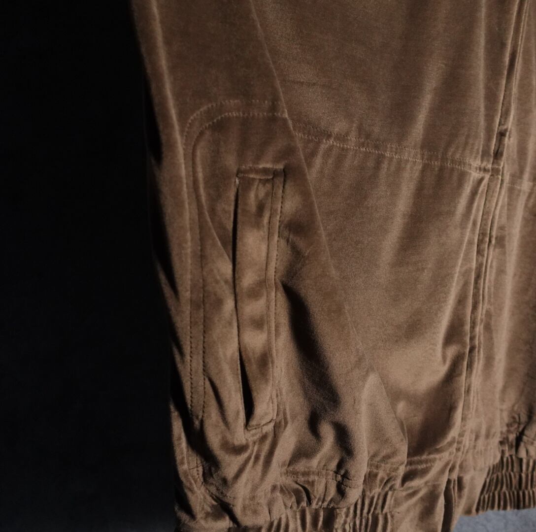 素材はポリエステル100%のトラックジャケットでは比較的珍しいベロア生地で肌触りが良く光沢感があります。
