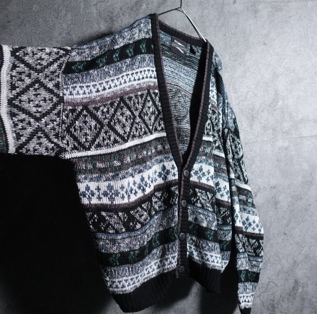 幾何学模様のデザインカーディガンが入荷です。