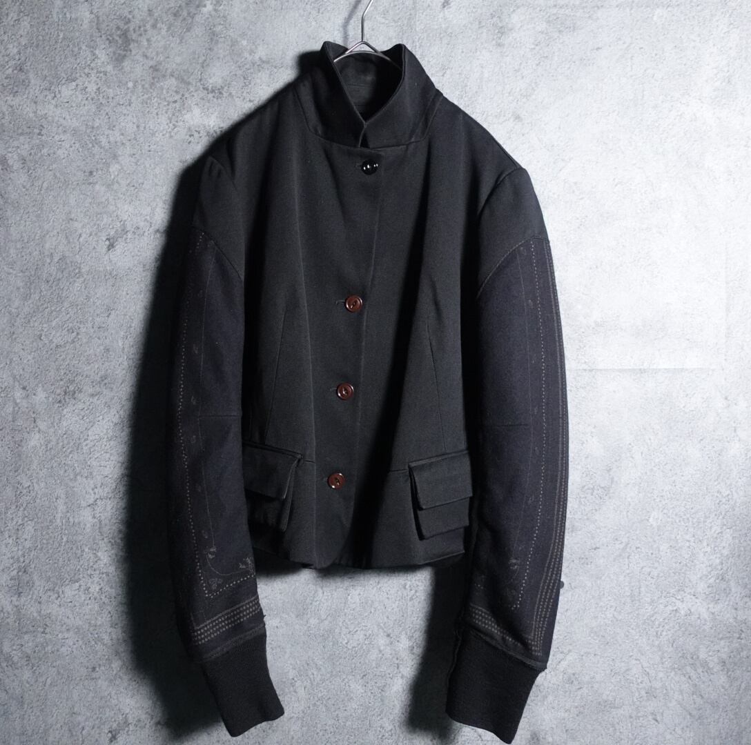 ブラックをベースに両袖をウール生地に切替しさらに繊細かつ上品なベージュの柄をあしらったスペシャルなデザイン。