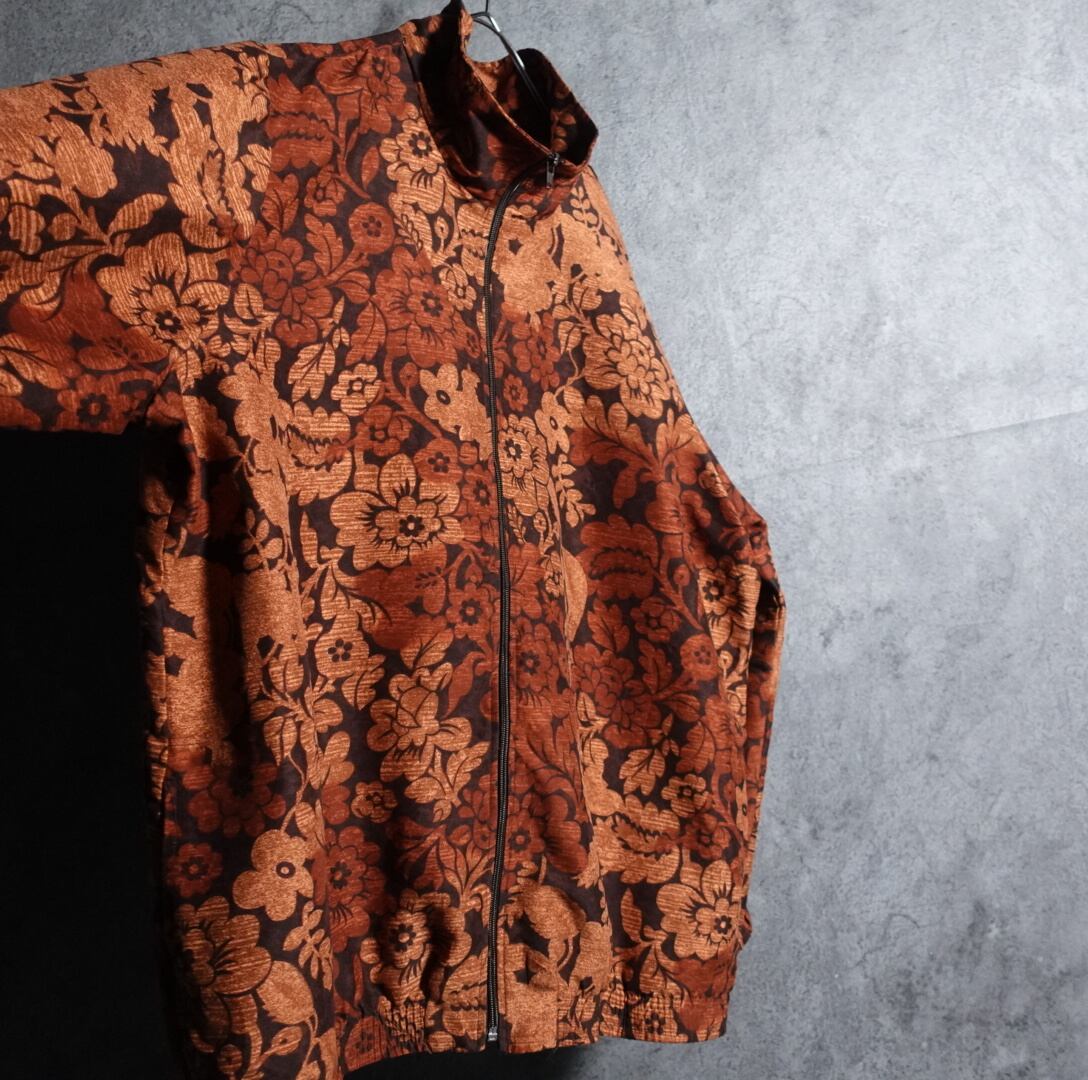 ブラウンの花柄デザインナイロンジャケットが入荷です。