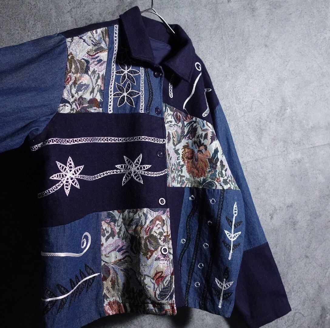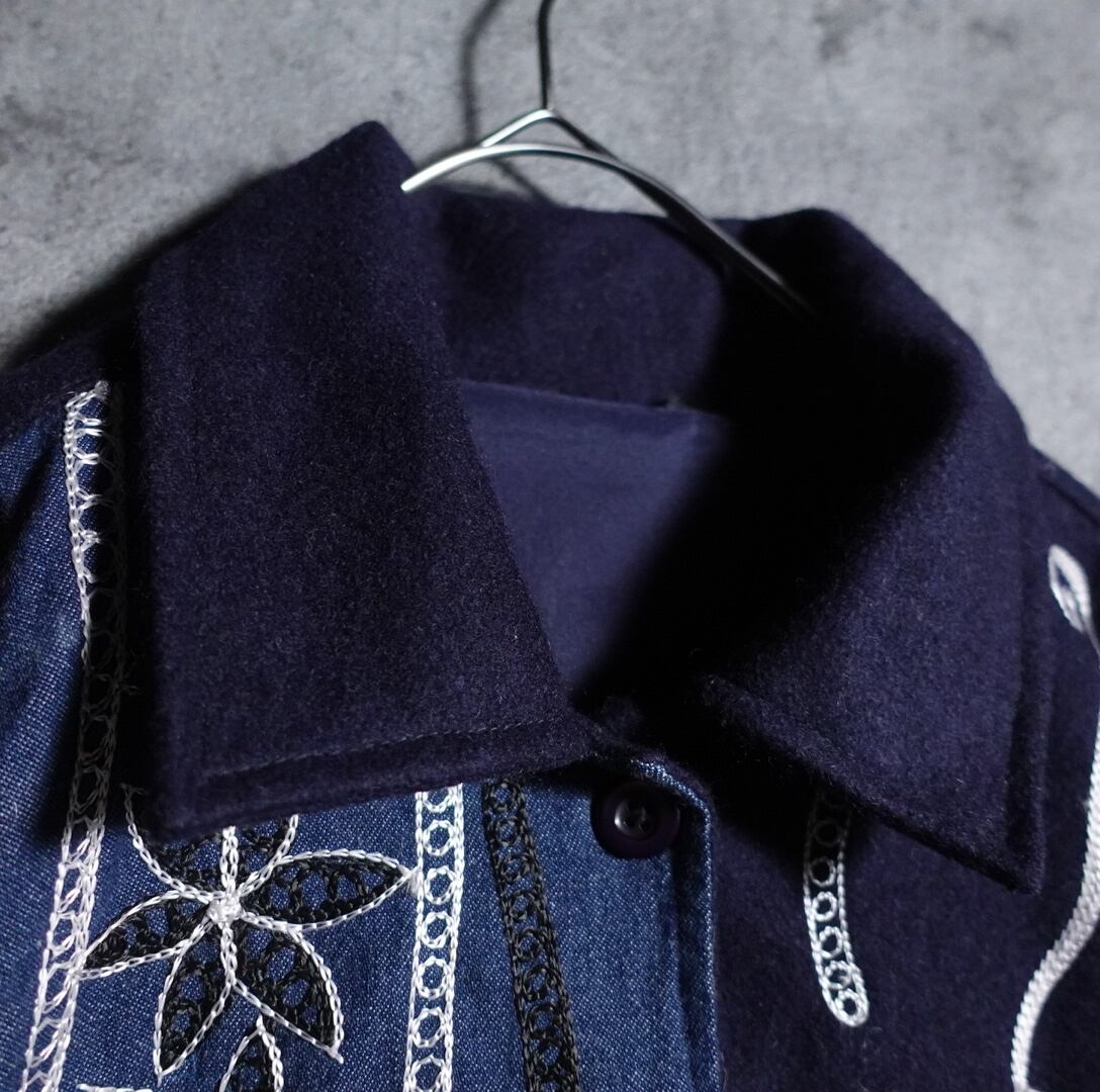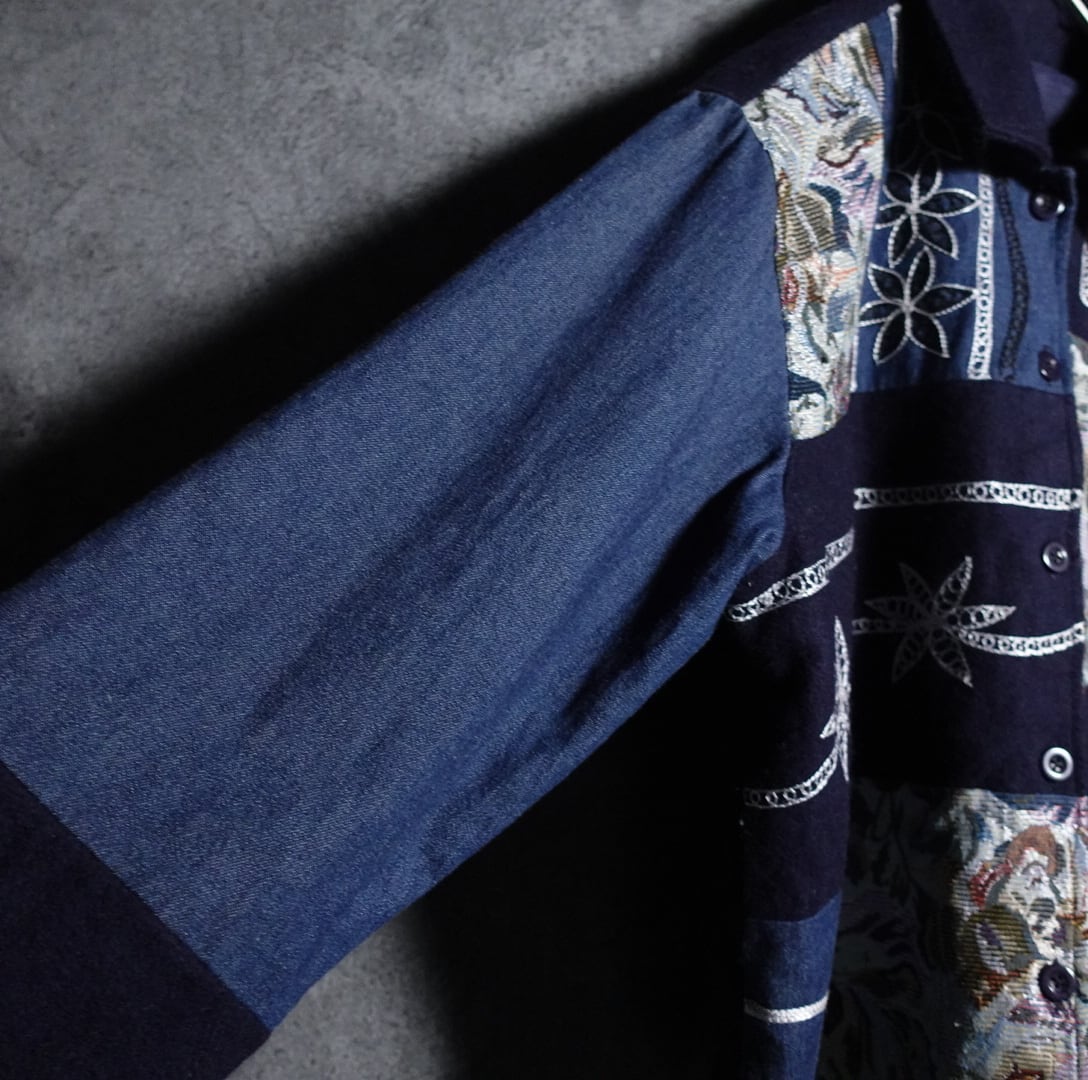 Denim & Wool & Gobelins Patchwork Design Jacket