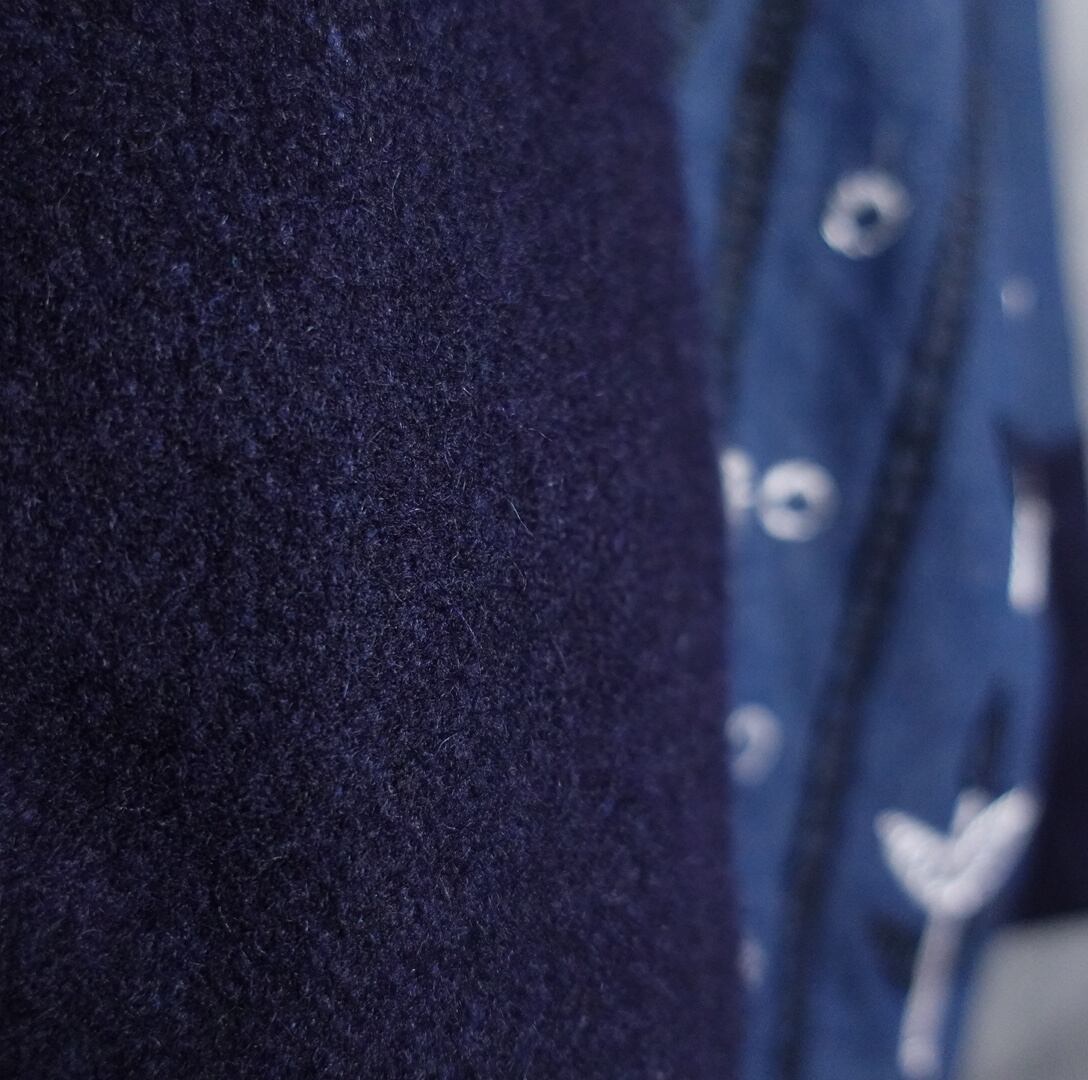 前見頃以外はデニムとウールのみで裏地もあるため、今の季節にぴったりです。