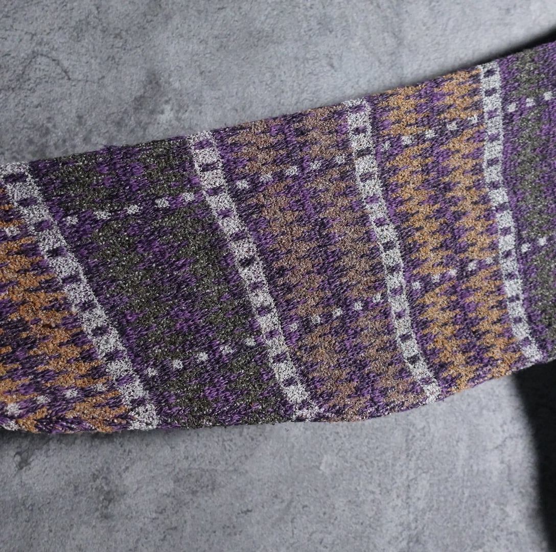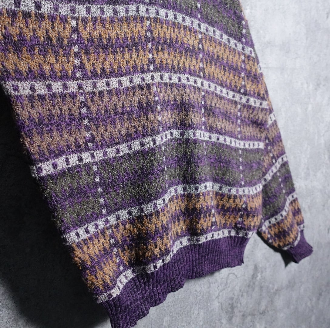 パープル、ブラウン、イエロー、カーキ、アイボリーの古着ならではのマルチカラーリング。