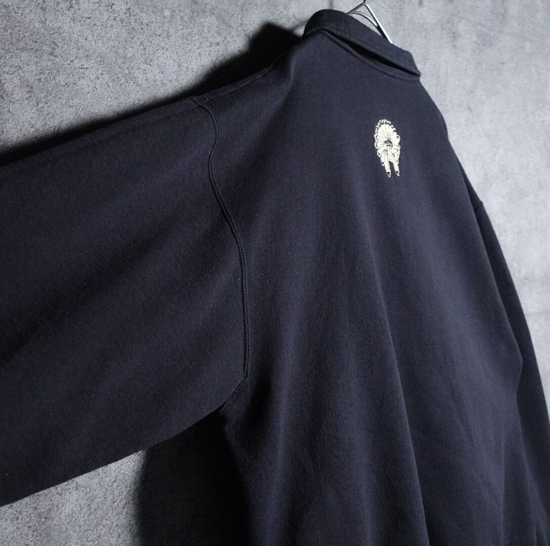 ブラックをベースに左胸にゴールドのロゴ刺繍と、背面にゴールド、ホワイトのインディアンモチーフ刺繍を施したデザイン。