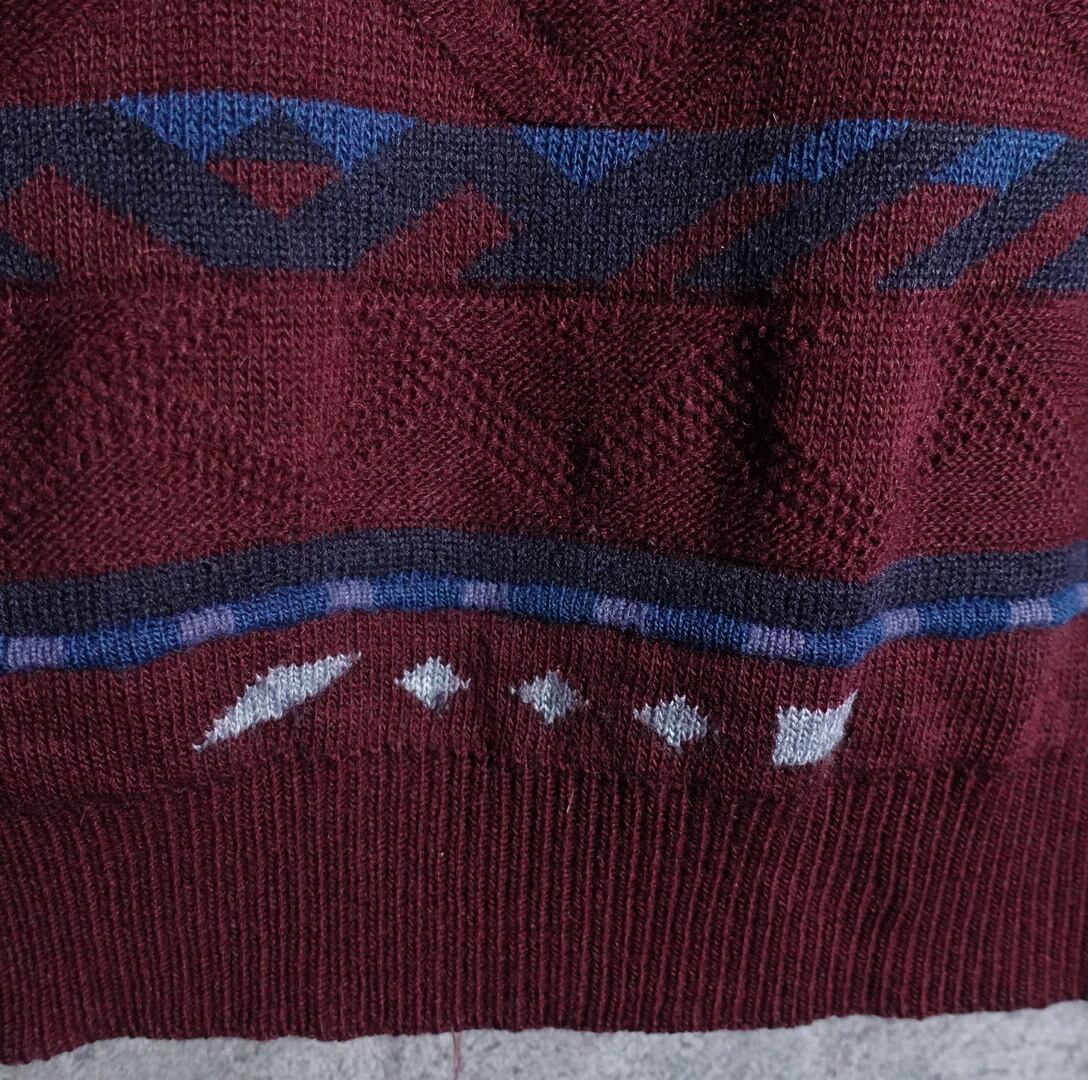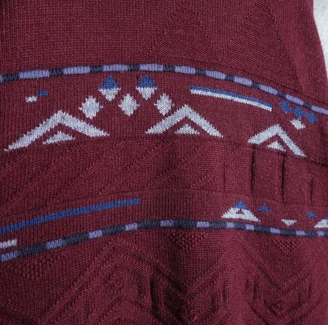 ワインレッドのダイヤモチーフ幾何学デザインニットが入荷です。