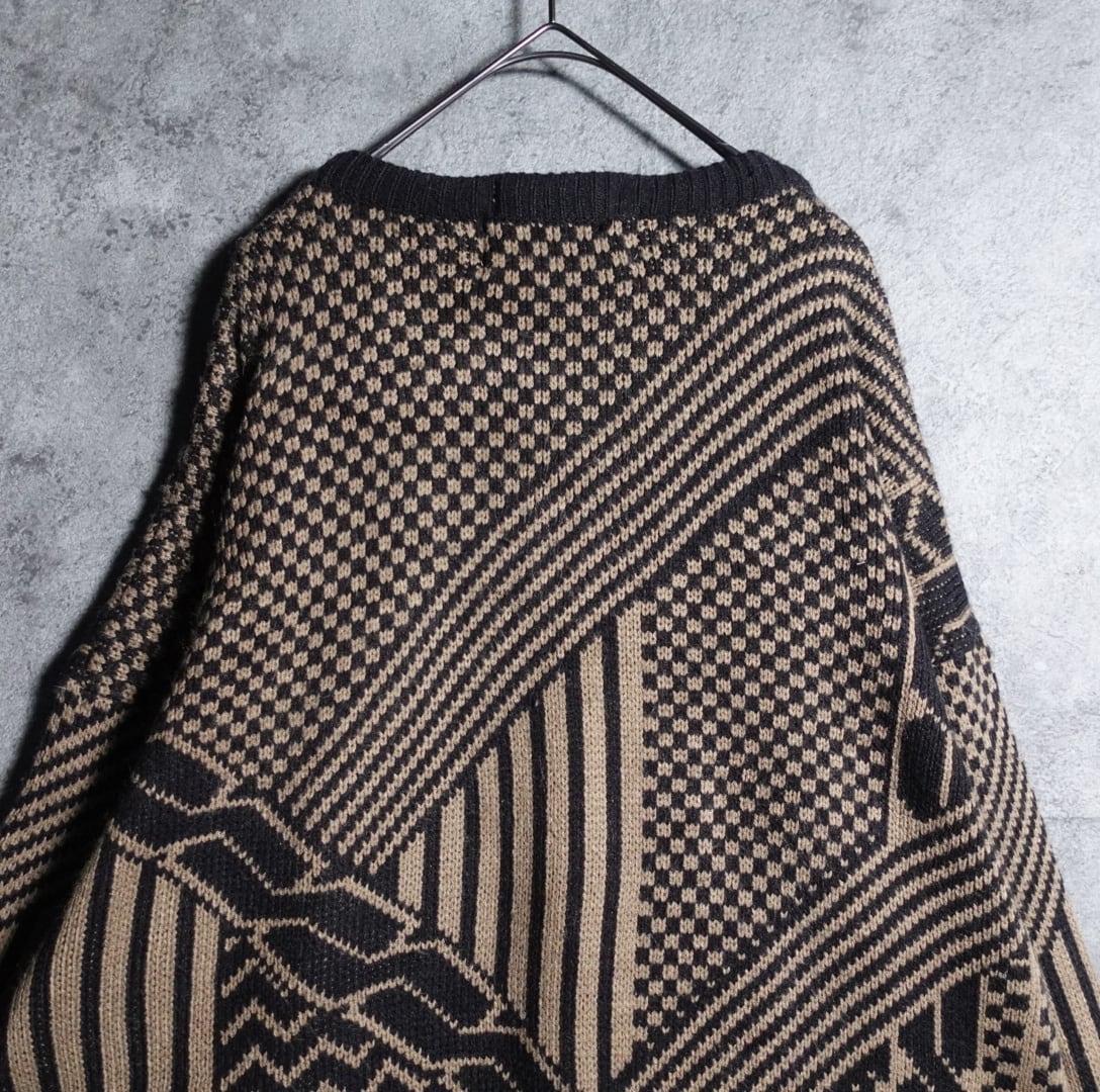 ブラックをベースにベージュの幾何学模様を全面にあしらったデザイン。