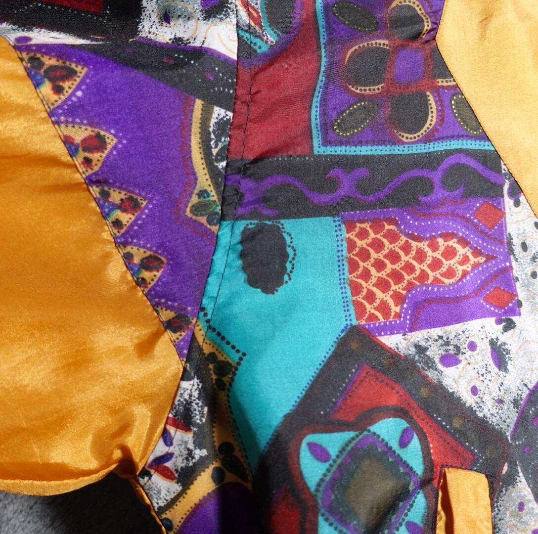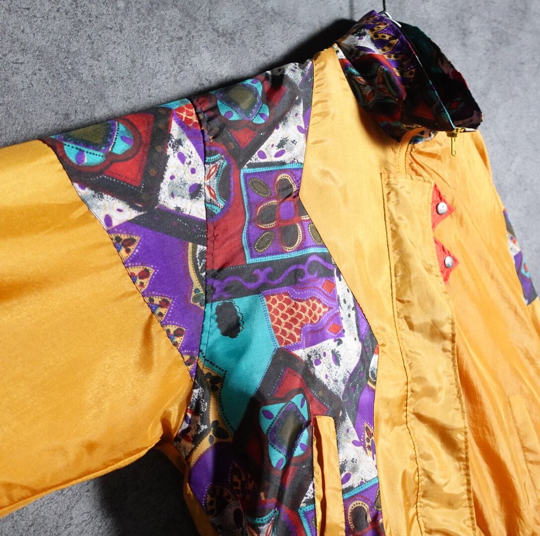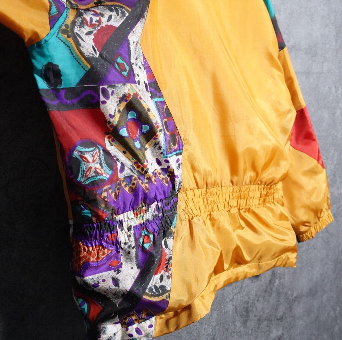 イエローの幾何学柄デザインナイロンジャケットが入荷です。