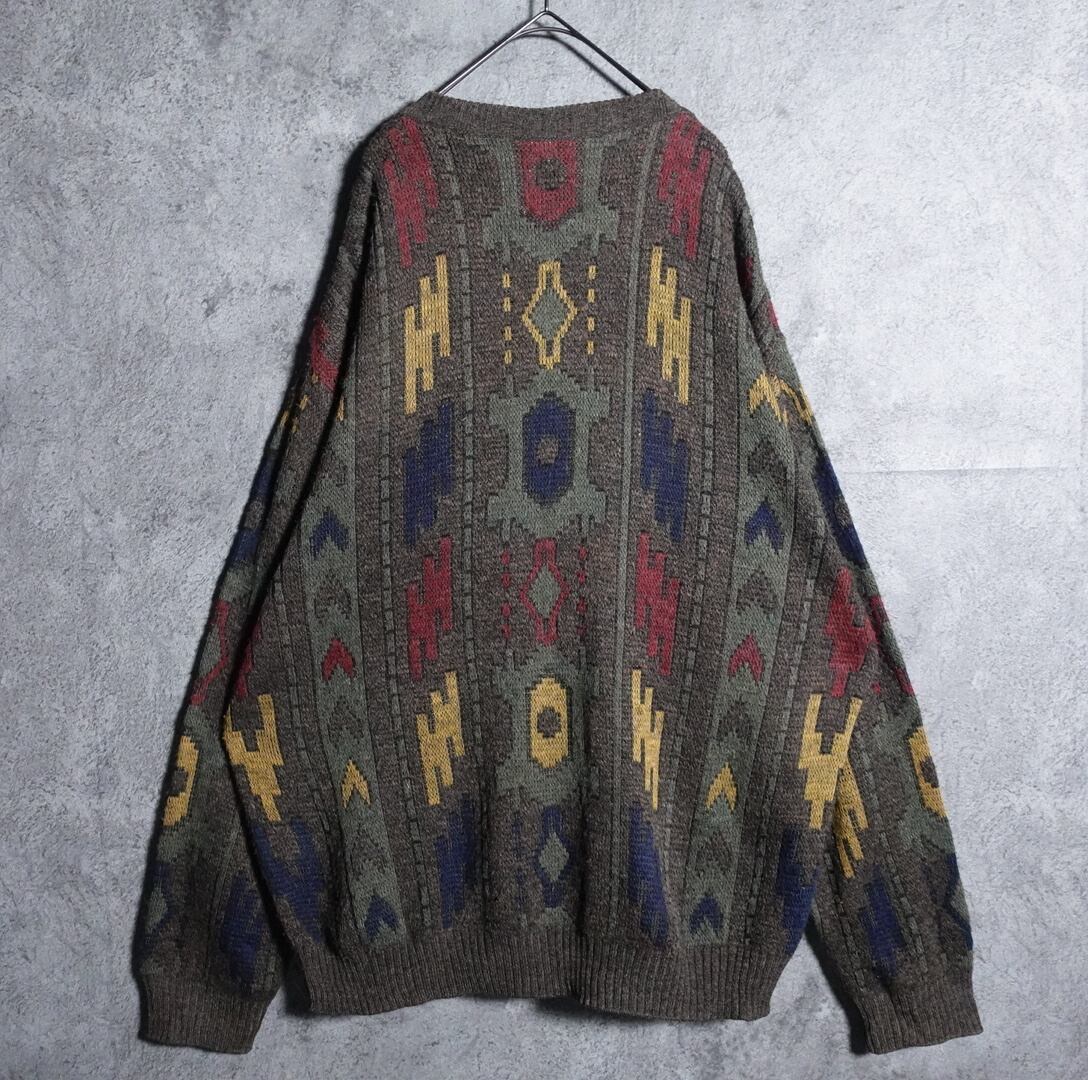 EURO multicolor geometric design V-neck knit