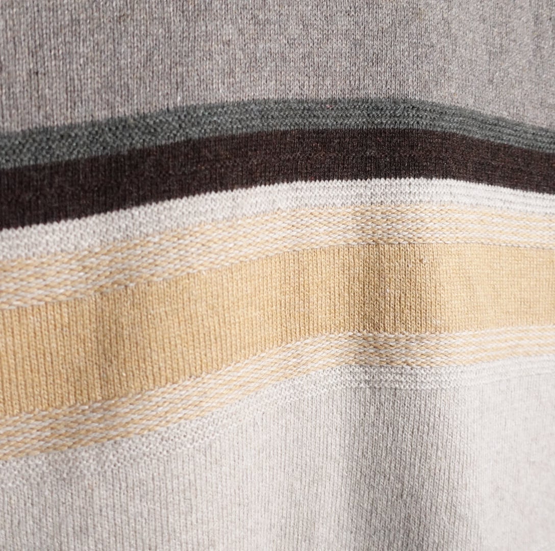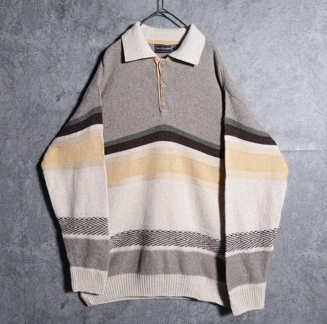 マルチカラーのボーダー柄デザインニットポロシャツが入荷です。