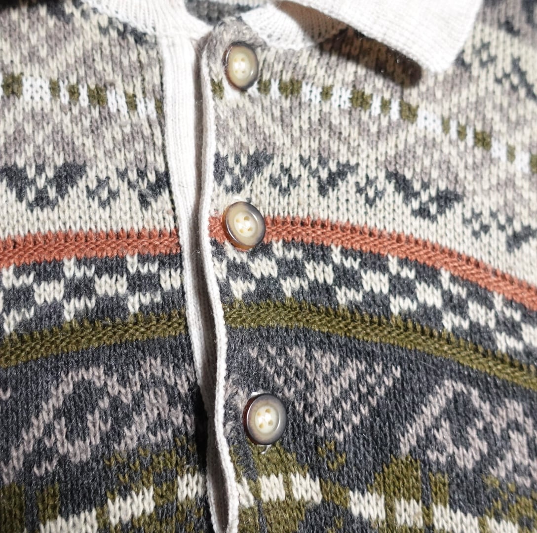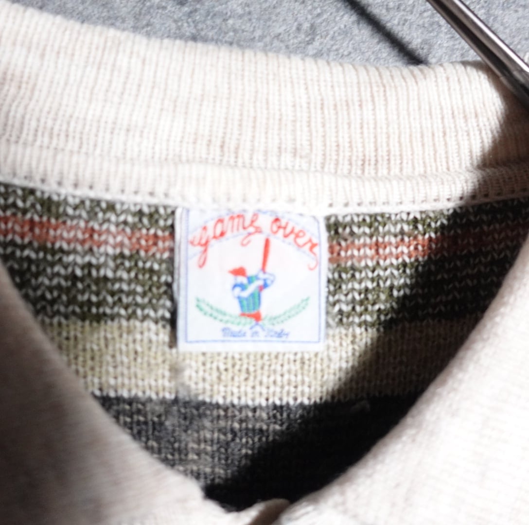 マルチカラーの抽象柄ボーダーデザインニットポロシャツが入荷です。