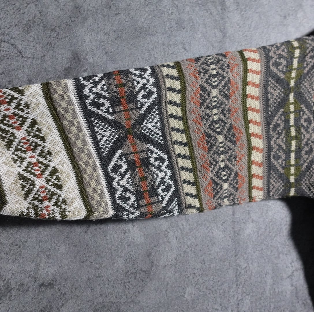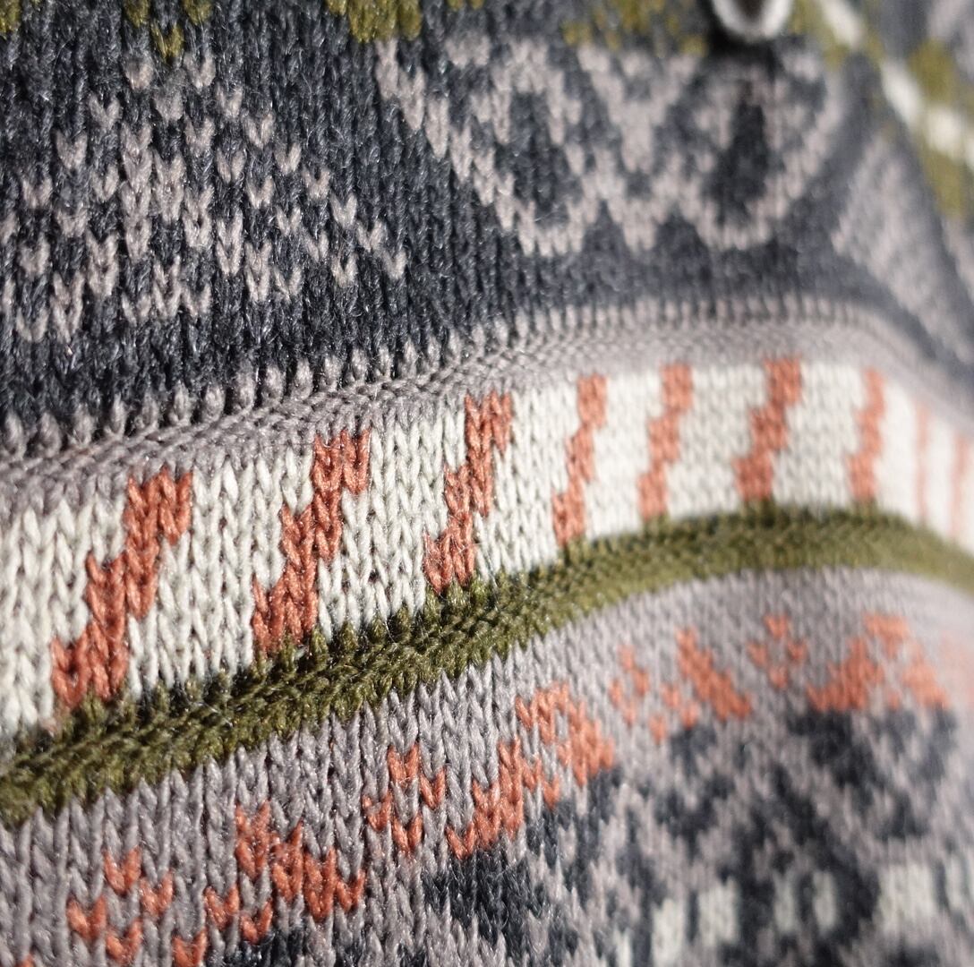 柄の境目の編み方が変わっており、立体感のある仕様となっていて◎
