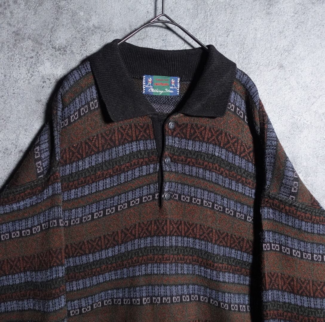 Geometric Pattern Border Design Knit Polo Shirt