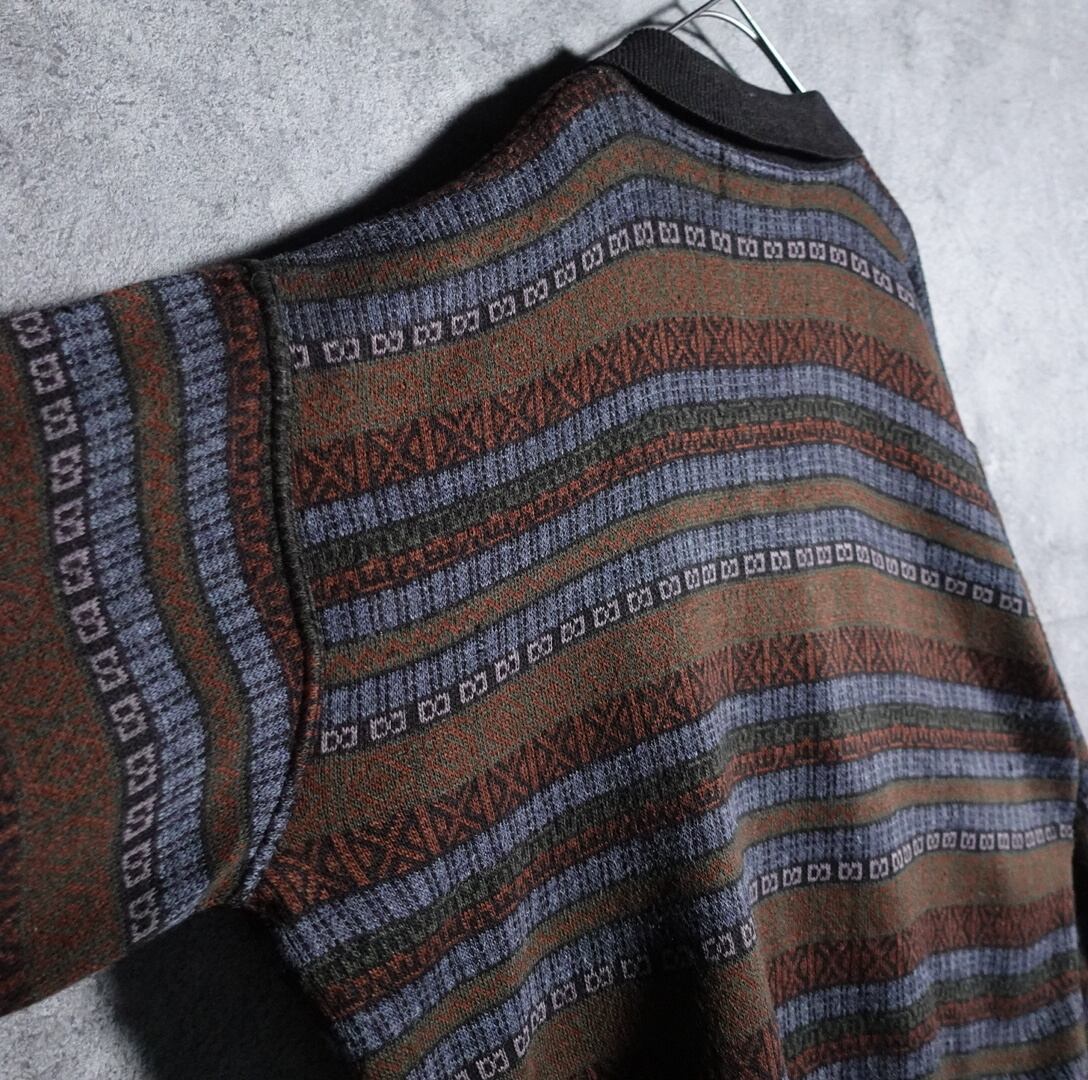 幾何学柄のボーダーデザインニットポロシャツが入荷です。