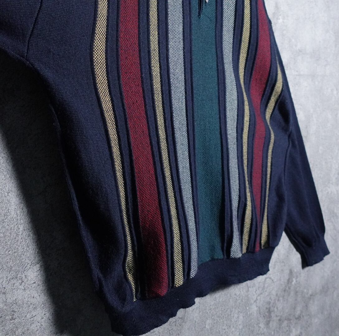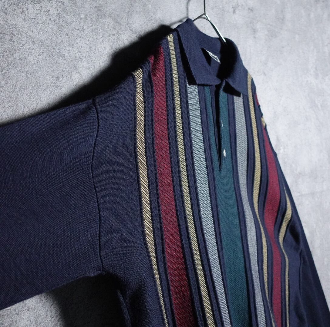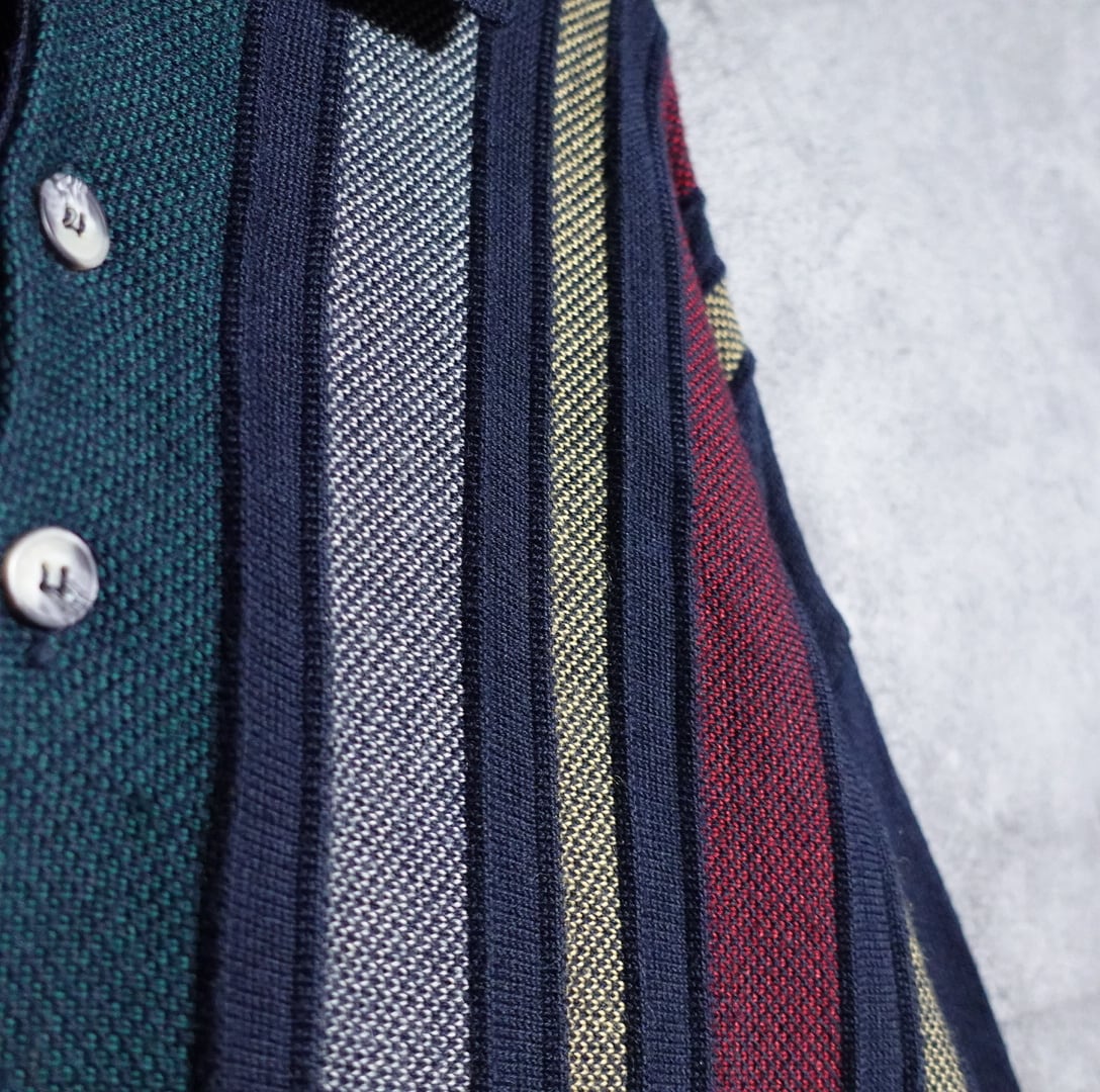 マルチカラーのストライプ柄デザインニットポロシャツが入荷です。